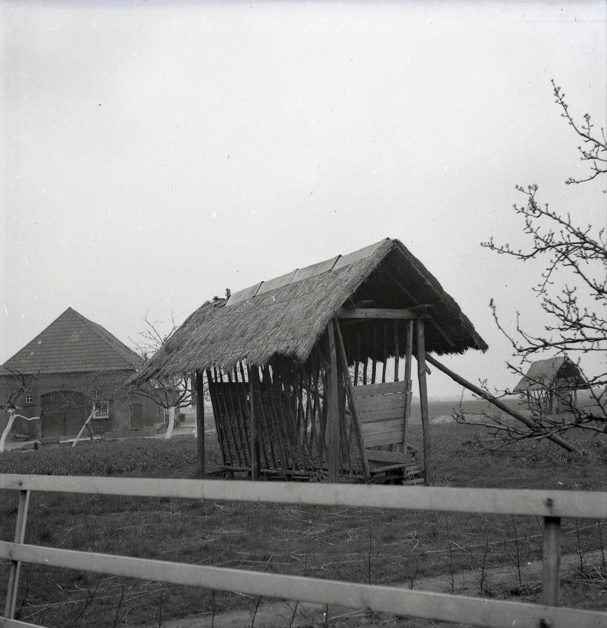 Maisdroogschuurtjes, Varsselder, 1943 (zwart-wit negatief)