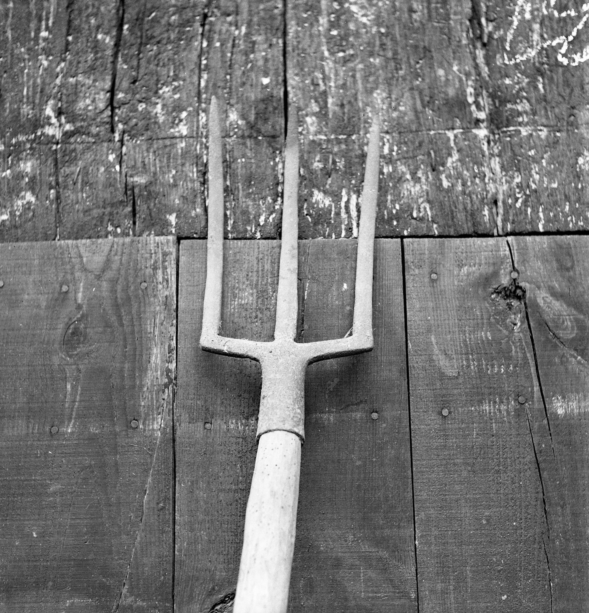 IJzeren mestvork, Montfort, 1943 (zwart-wit negatief)