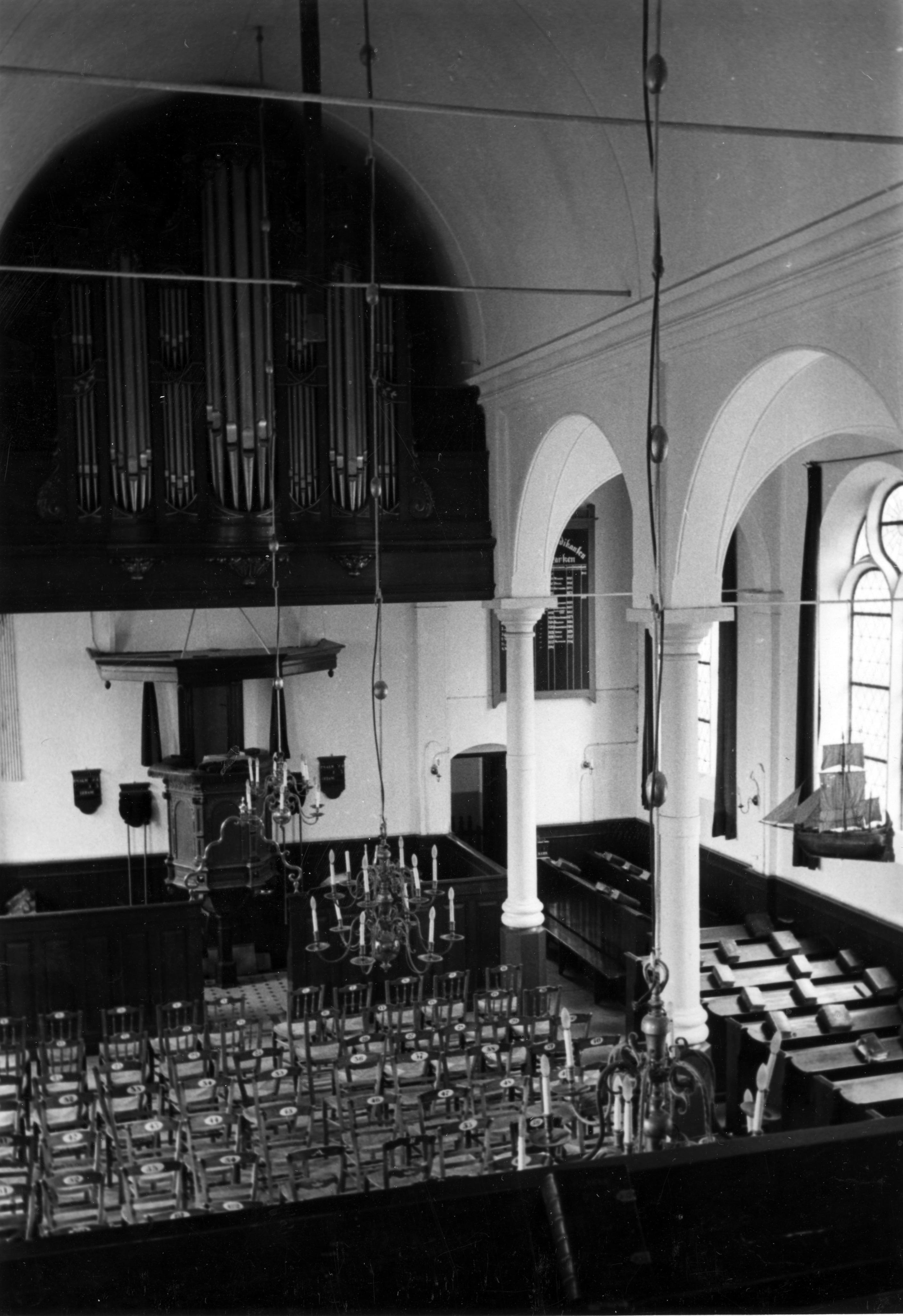 Kerkinterieur, Marken, 1943 (zwart-wit foto)