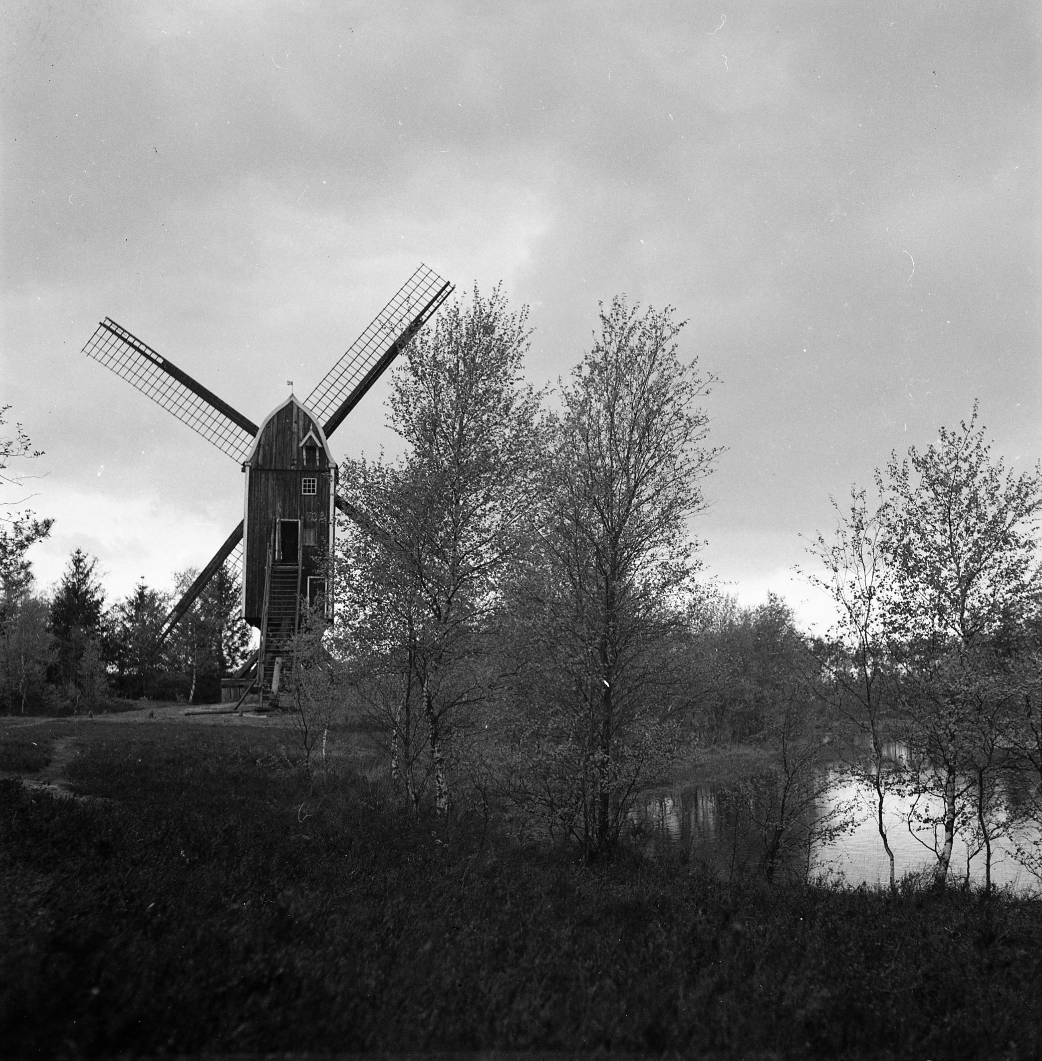 Houten standerdmolen, de 'Wissinkmolen', in het Buurserzand bij Haaksbergen. De molen werd in 1802 opgericht in Usselo en maalde tot 1921 het graan voor boeren in de omgeving. In 1921 werd de molen overgeplaatst naar het Buurserzand. Eind 1972 is de molen daar afgebroken. In 1981 is de molen teruggeplaatst op de oude locatie in ...