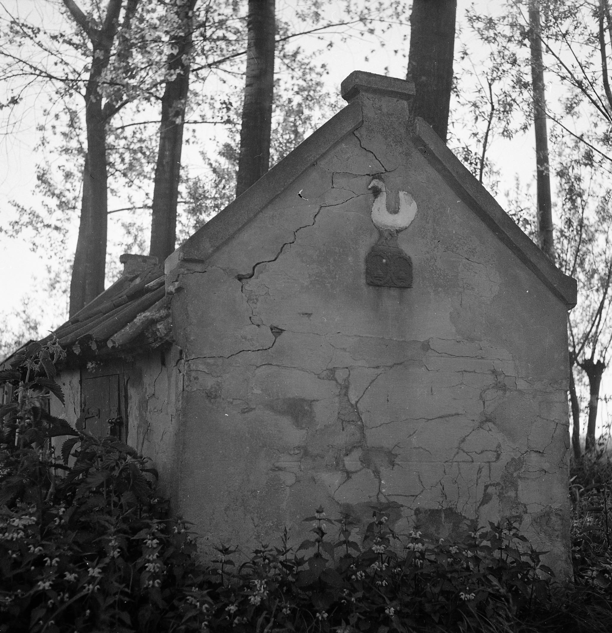 Kippenhok met gevelsteen, Bergambacht, 1943 (zwart-wit foto)