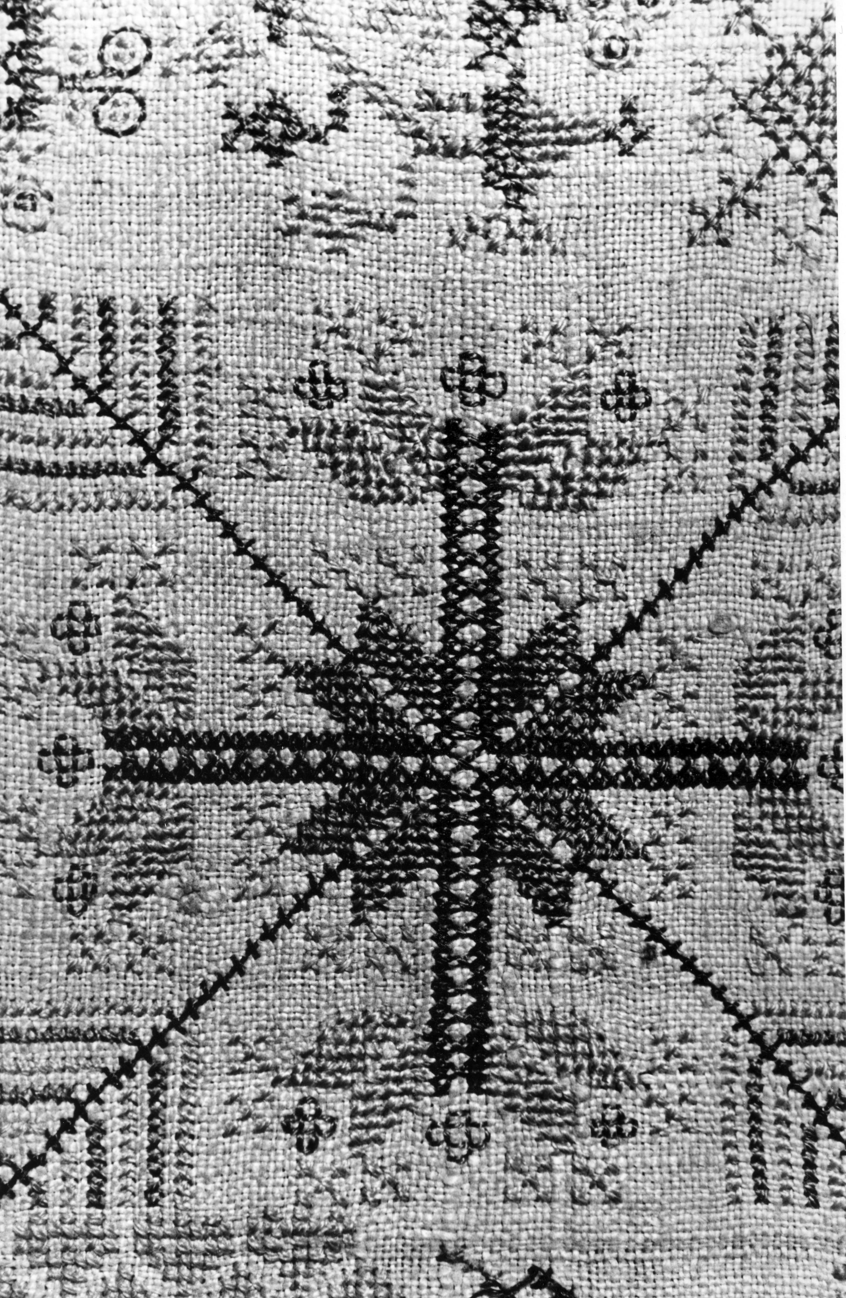 Detail van een merklap, Marken, 1943 (zwart-wit foto)