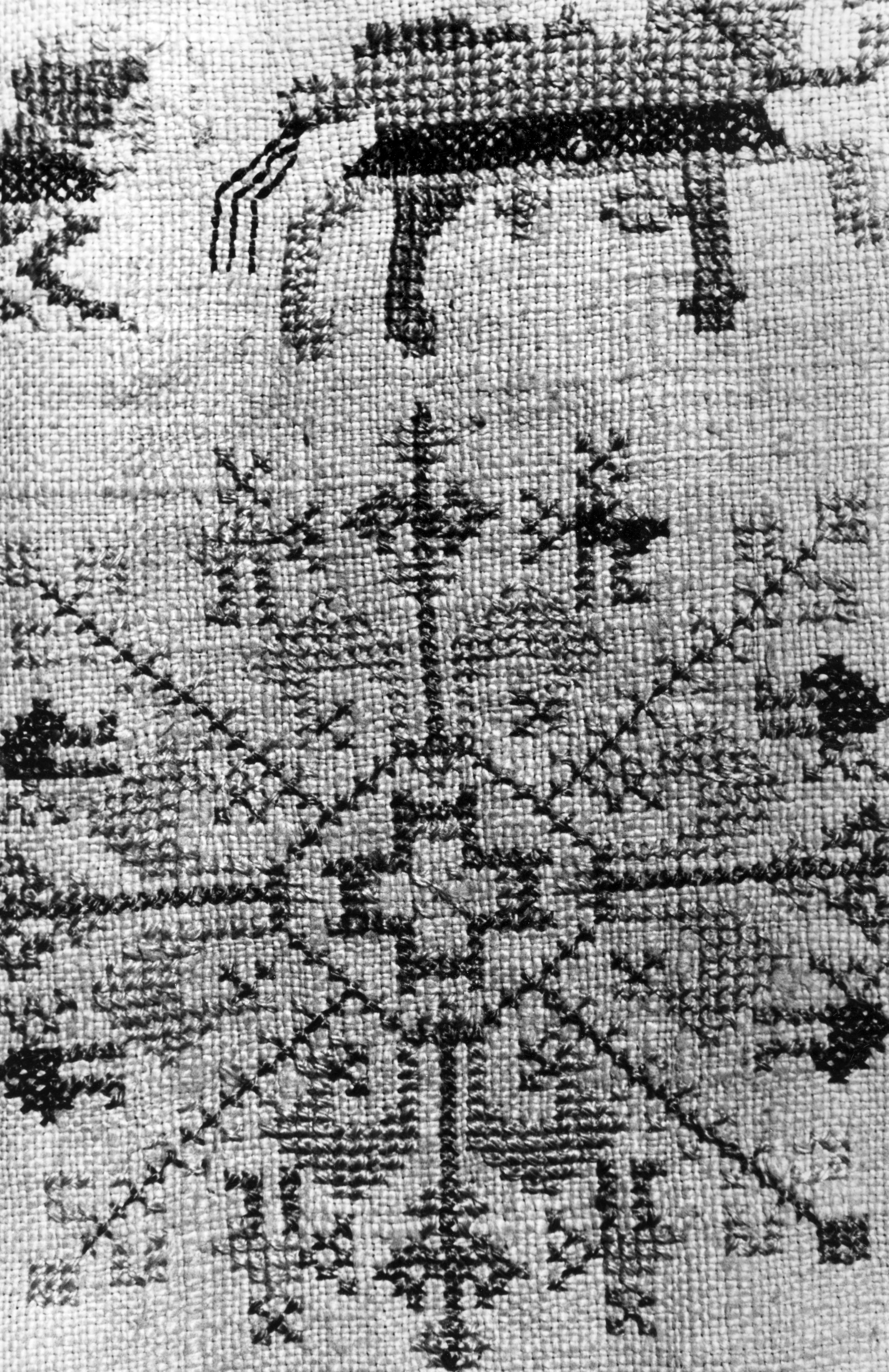Detail van een merklap, Marken, 1943 (zwart-wit foto)