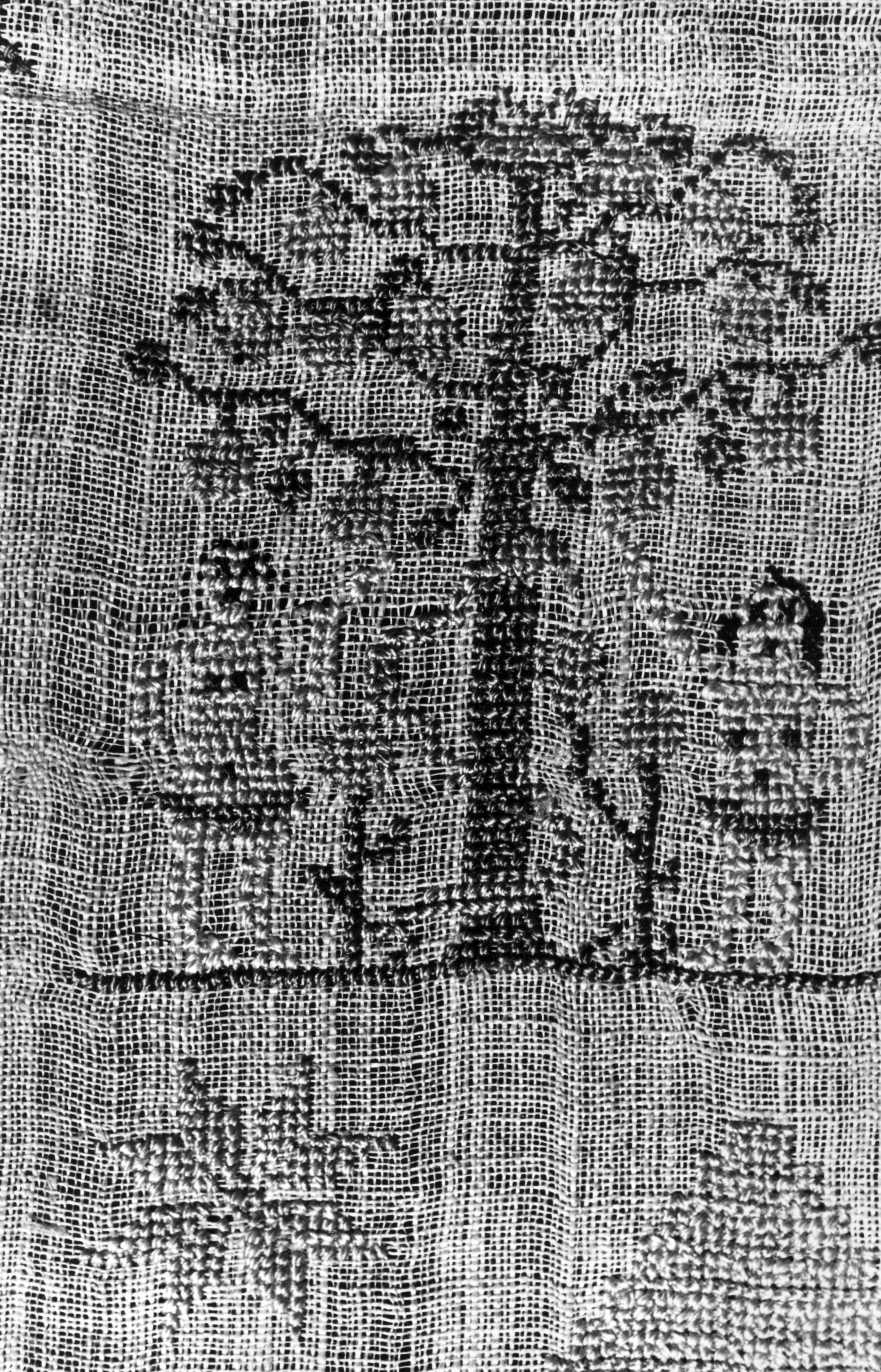 Detail van een merklap, Marken, 1943 (zwart-wit foto)