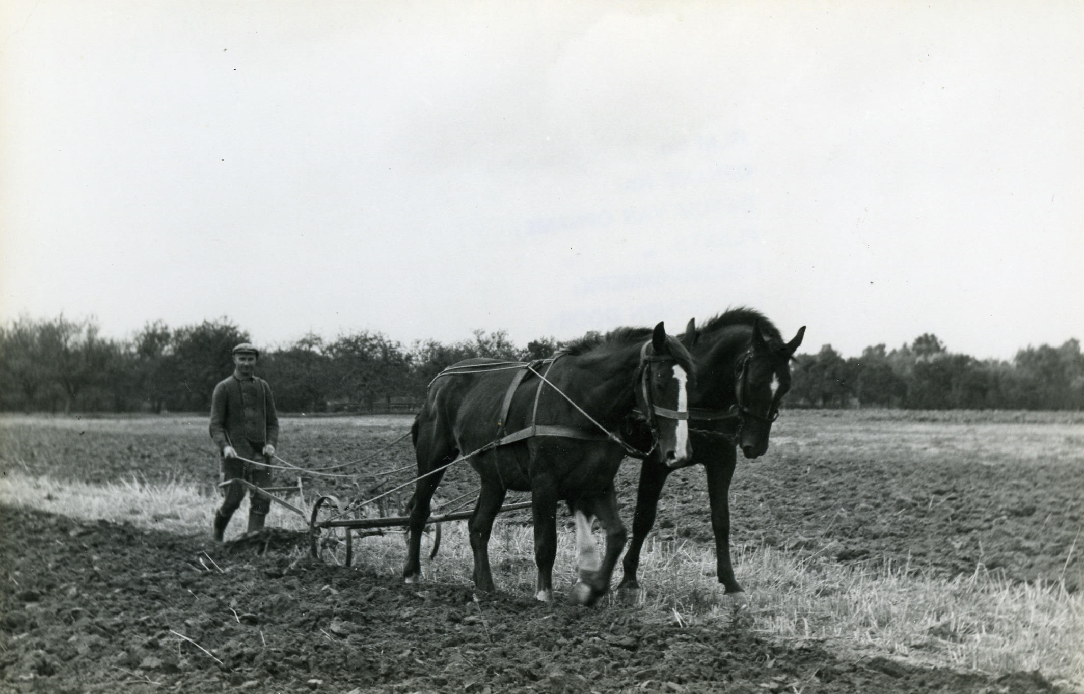 Ploegen van een akker bij Veessen, met twee paarden voor een ijzeren ploeg.