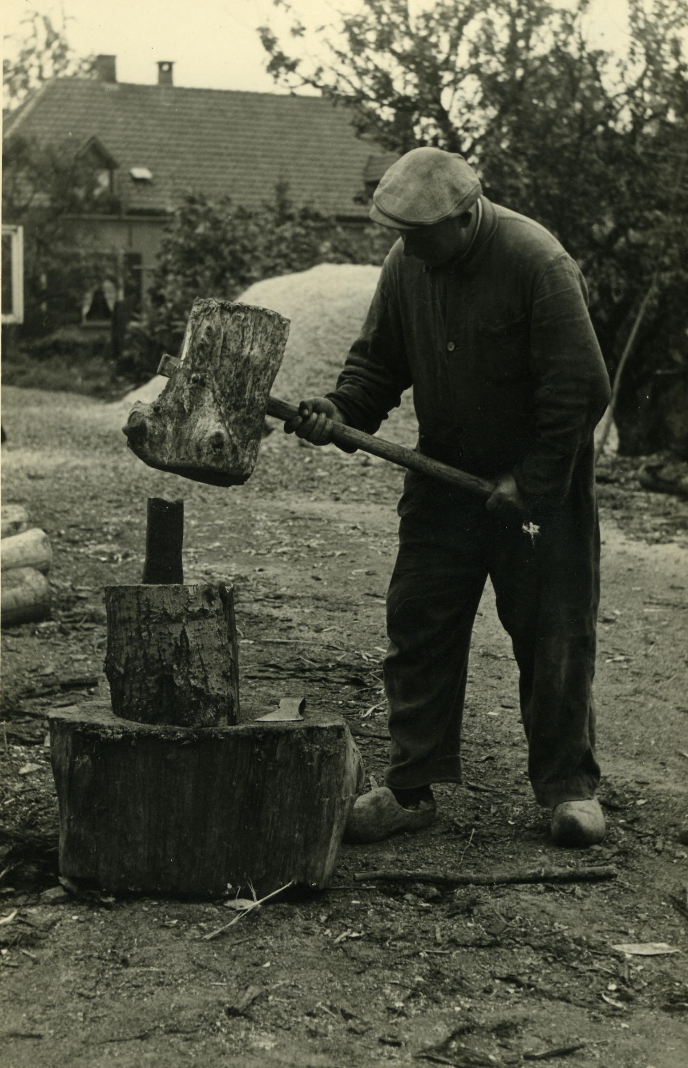 Kloven van hout, Veessen, 1945 (zwart-wit foto)