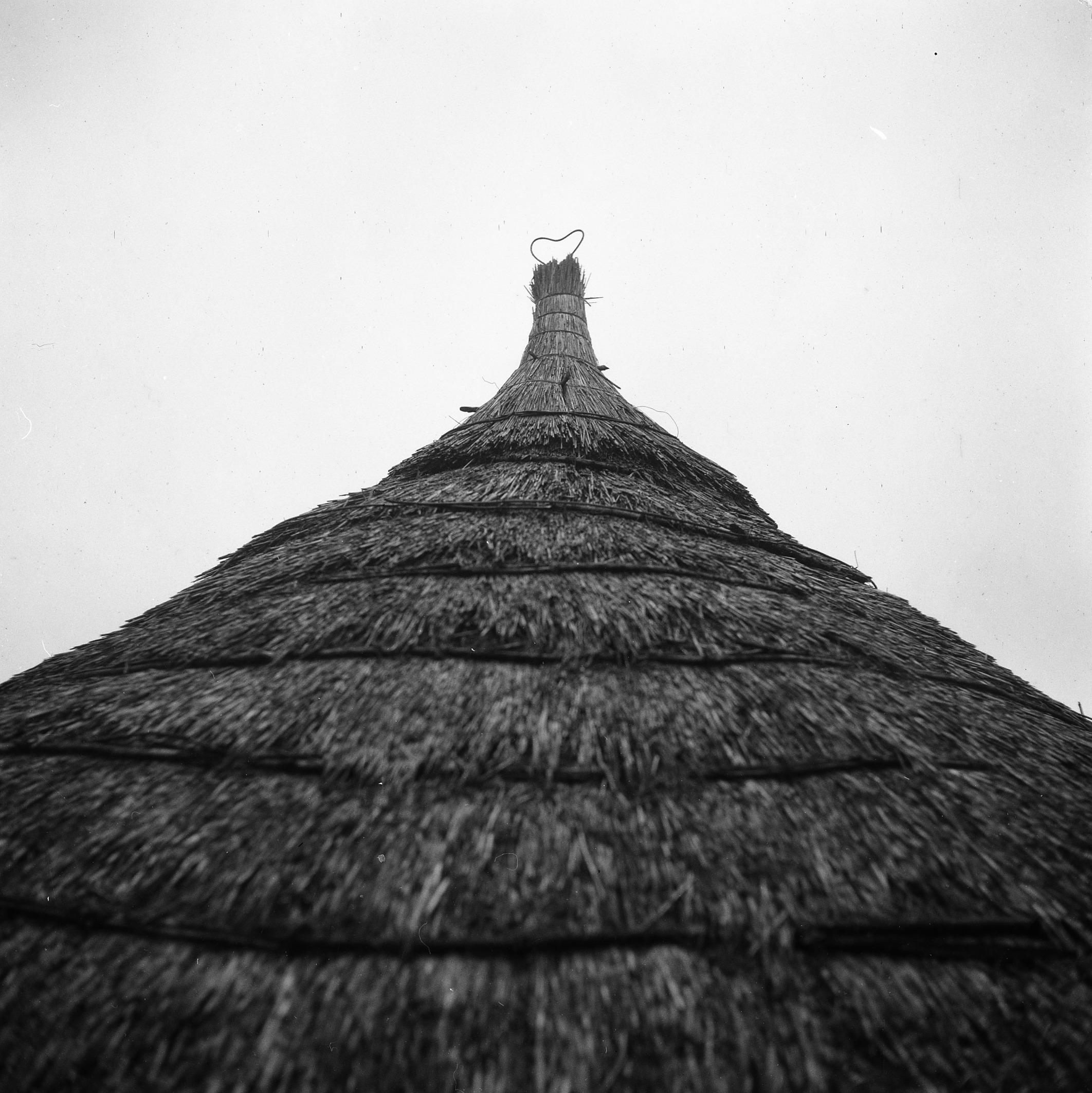 Top van rieten kap, Veessen, 1945 (zwart-wit negatief)