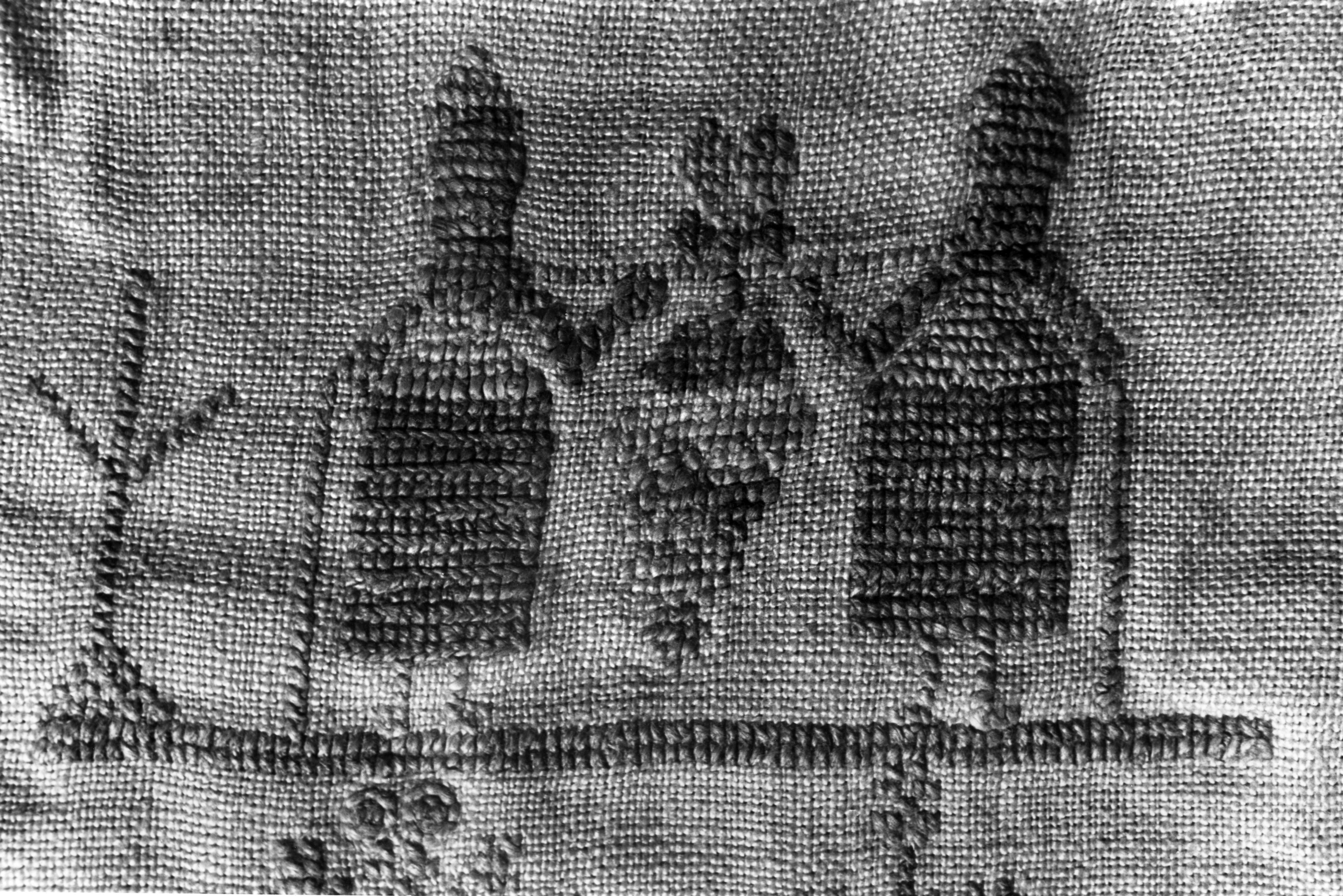 Detail van een merklap, Marken, 1943 (zwart-wit foto)
