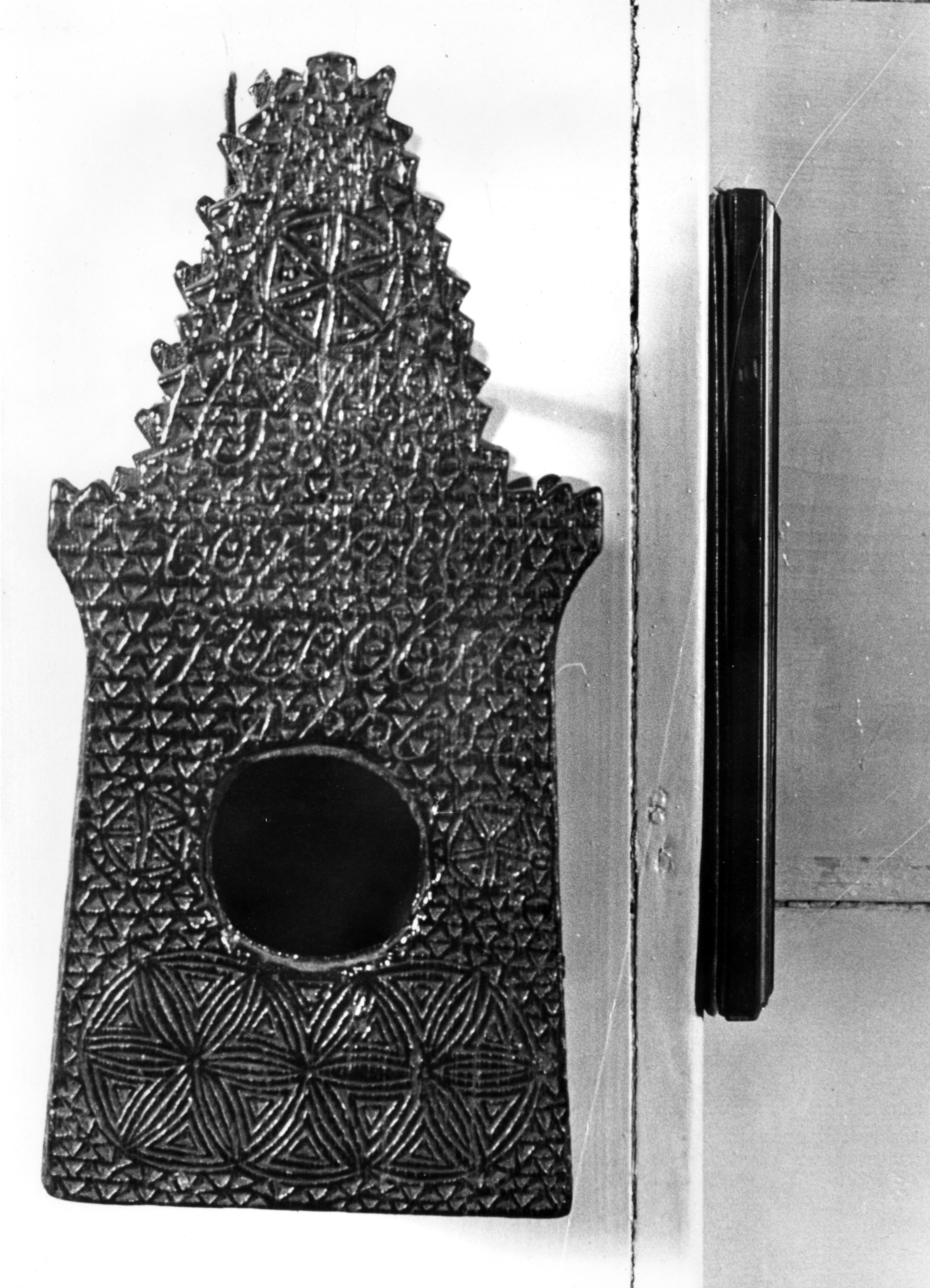 Horlogekastje, voorzien van kerfsnede, gefotografeerd op Marken.