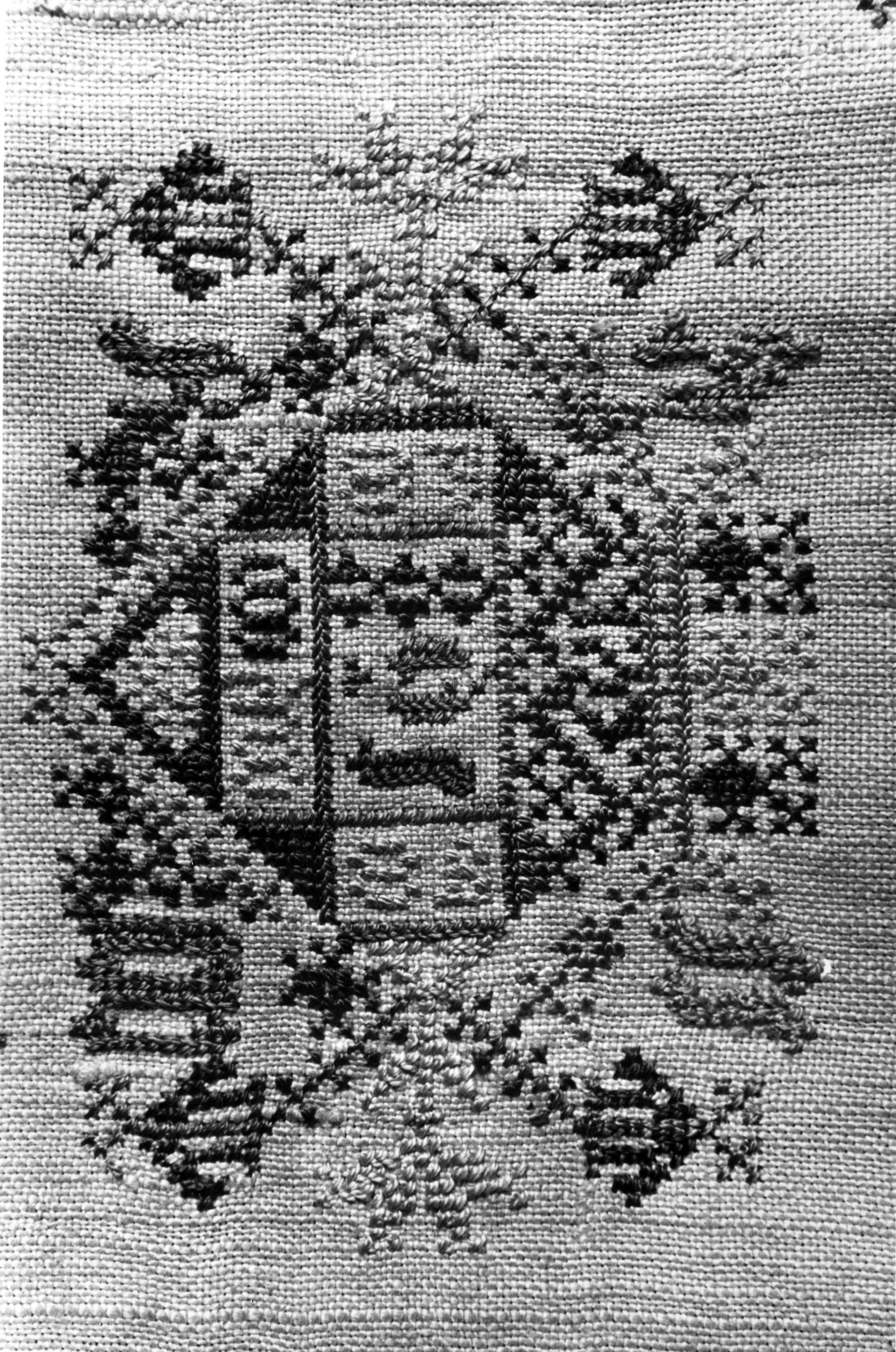 Detail van een merklap uit 1670, Marken, 1943 (zwart-wit foto)