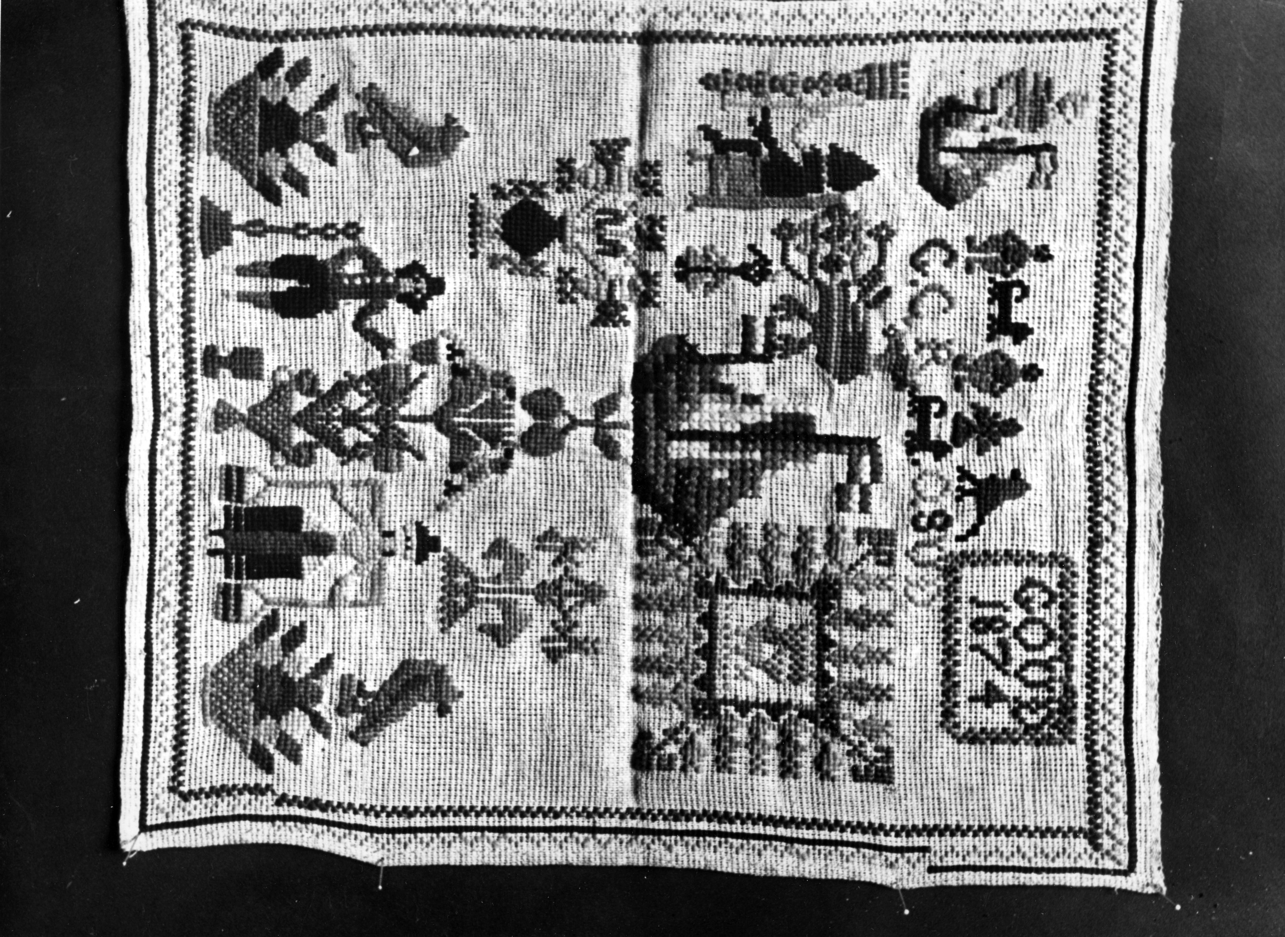 Merklap uit 1874, Marken, 1943 (zwart-wit foto)