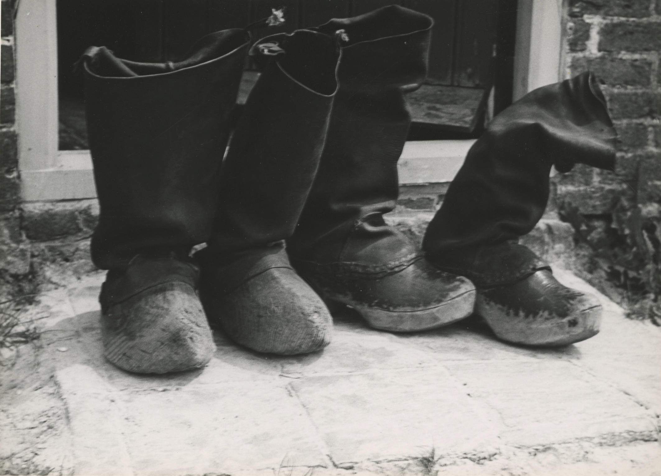 Twee paar klomplaarzen, Oldemarkt, 1940 (zwart-wit foto)