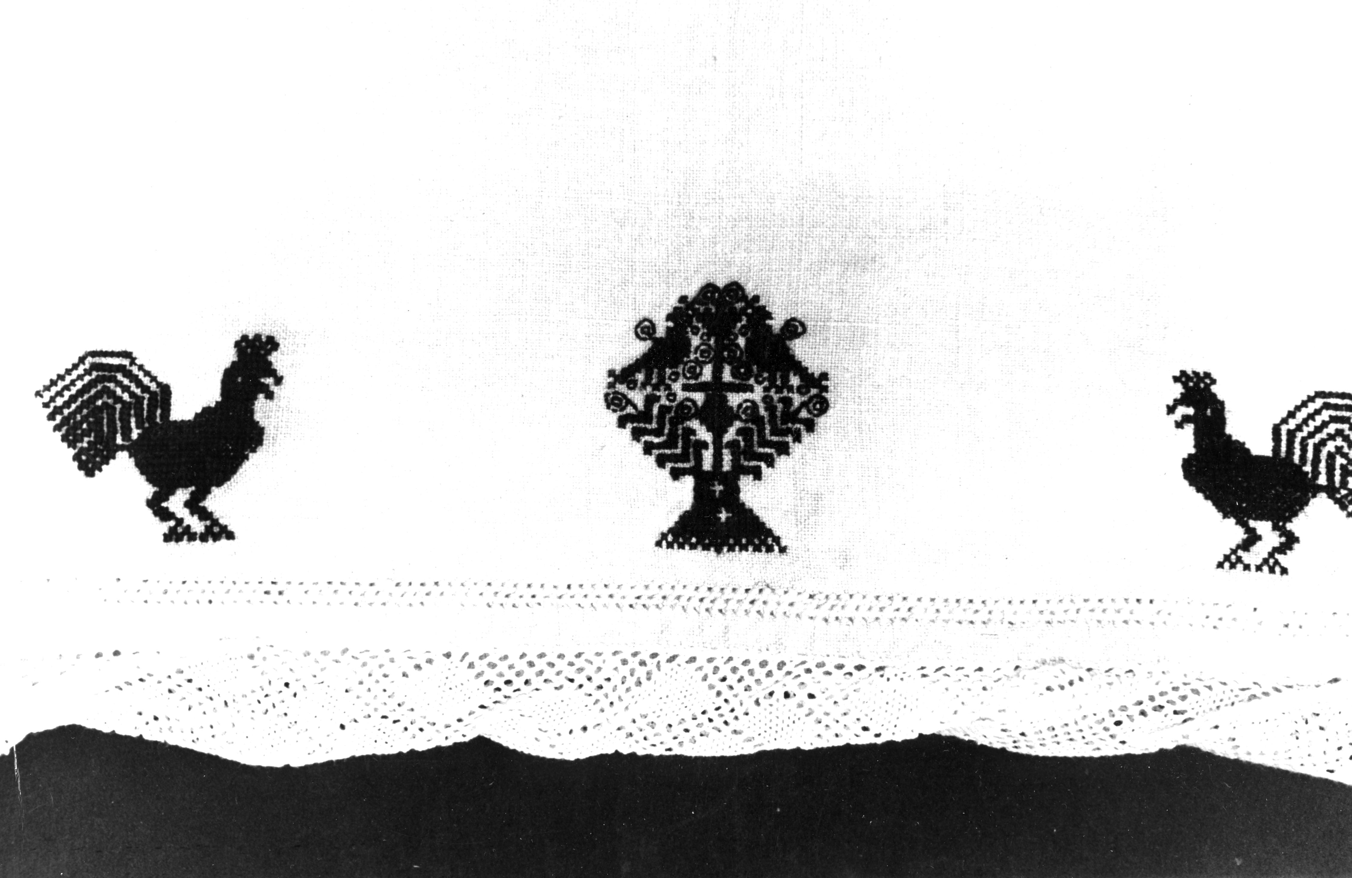 Kruissteekborduurwerk op kussensloop, Marken, 1943 (zwart-wit negatief)