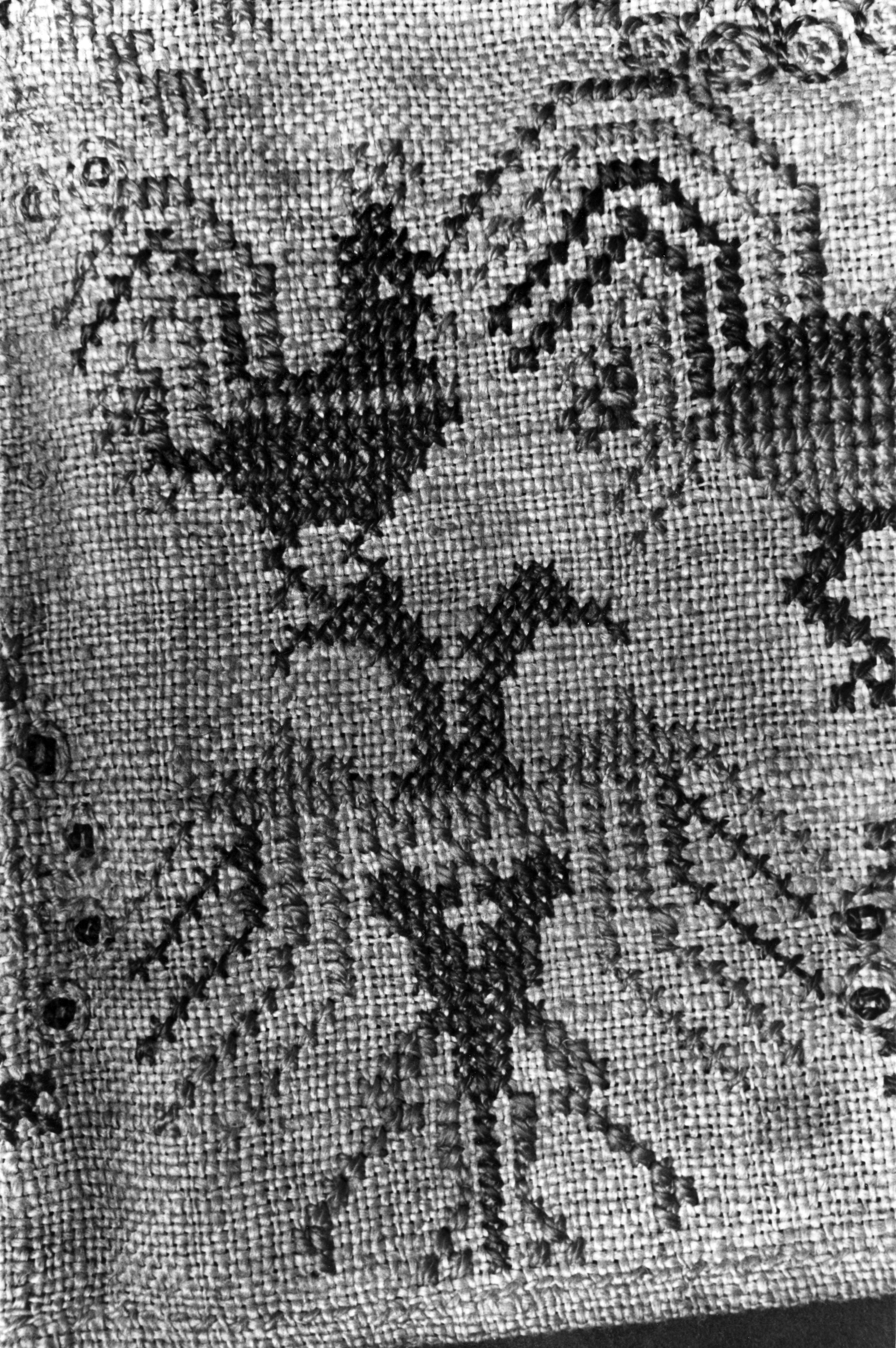 Detail van een merklap, Marken, 1943 (zwart-wit foto)