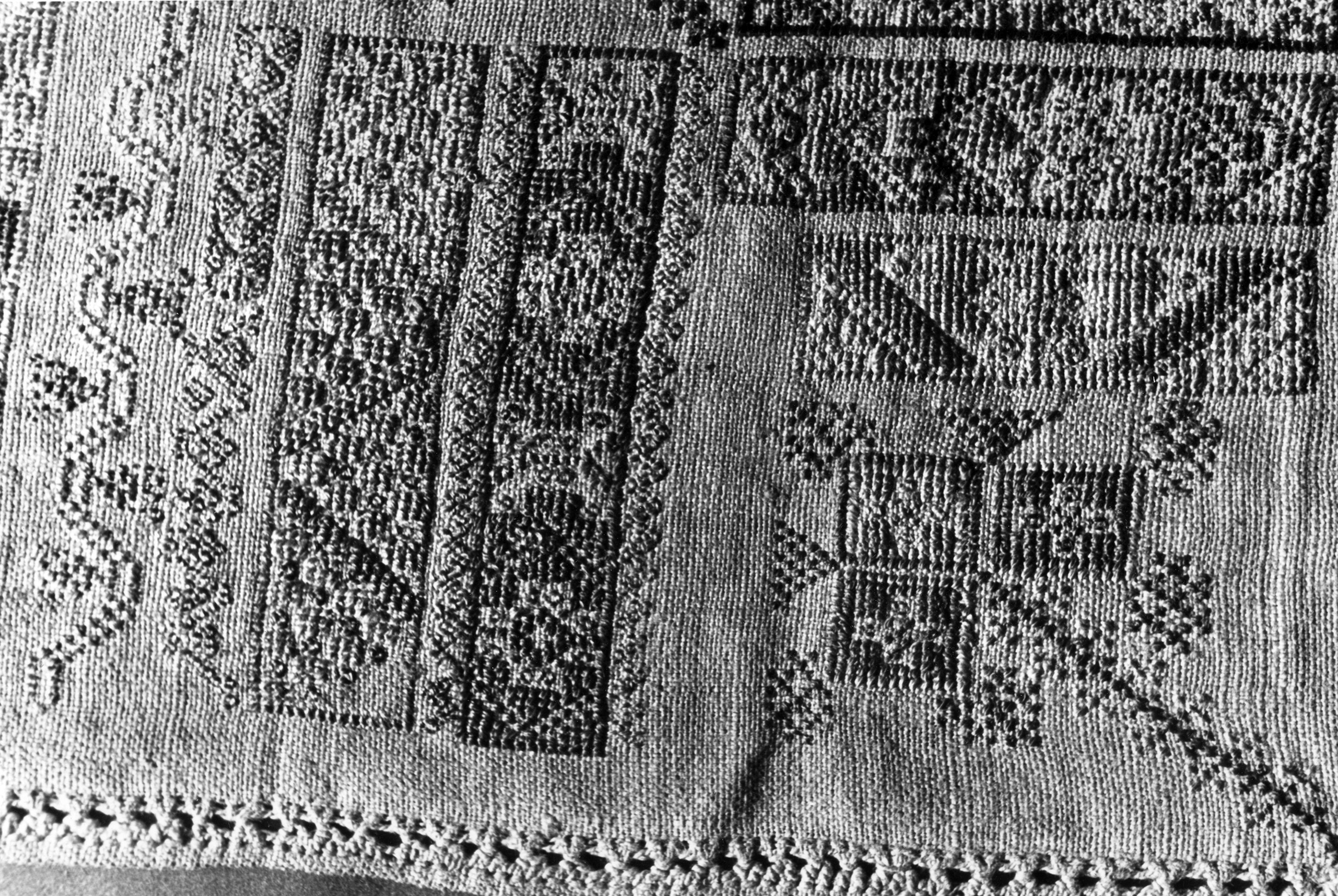 Detail van een merklap, Marken, 1943 (zwart-wit foto)