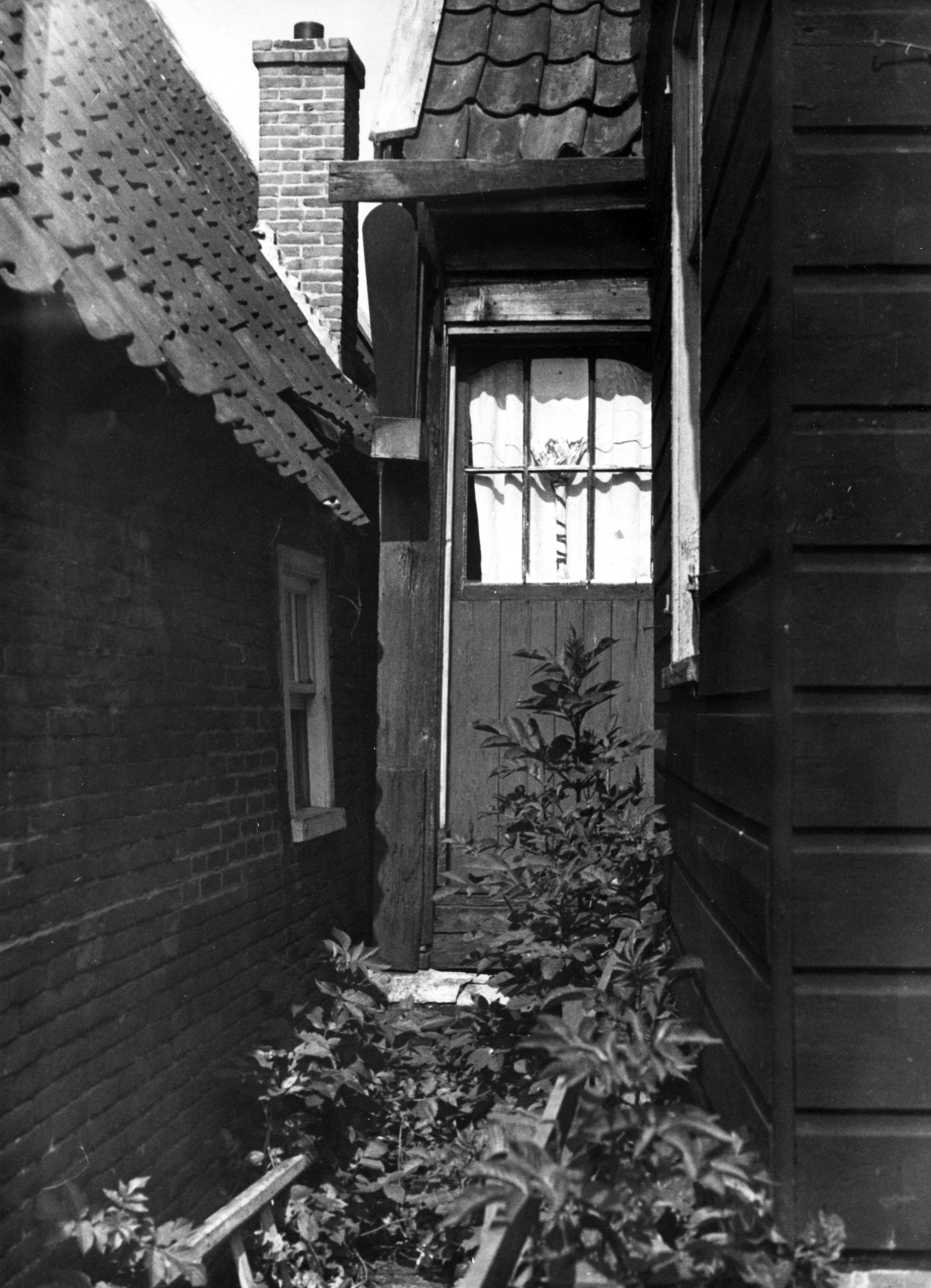 Hoekje tussen visserswoningen, Marken, 1943 (zwart-wit negatief)