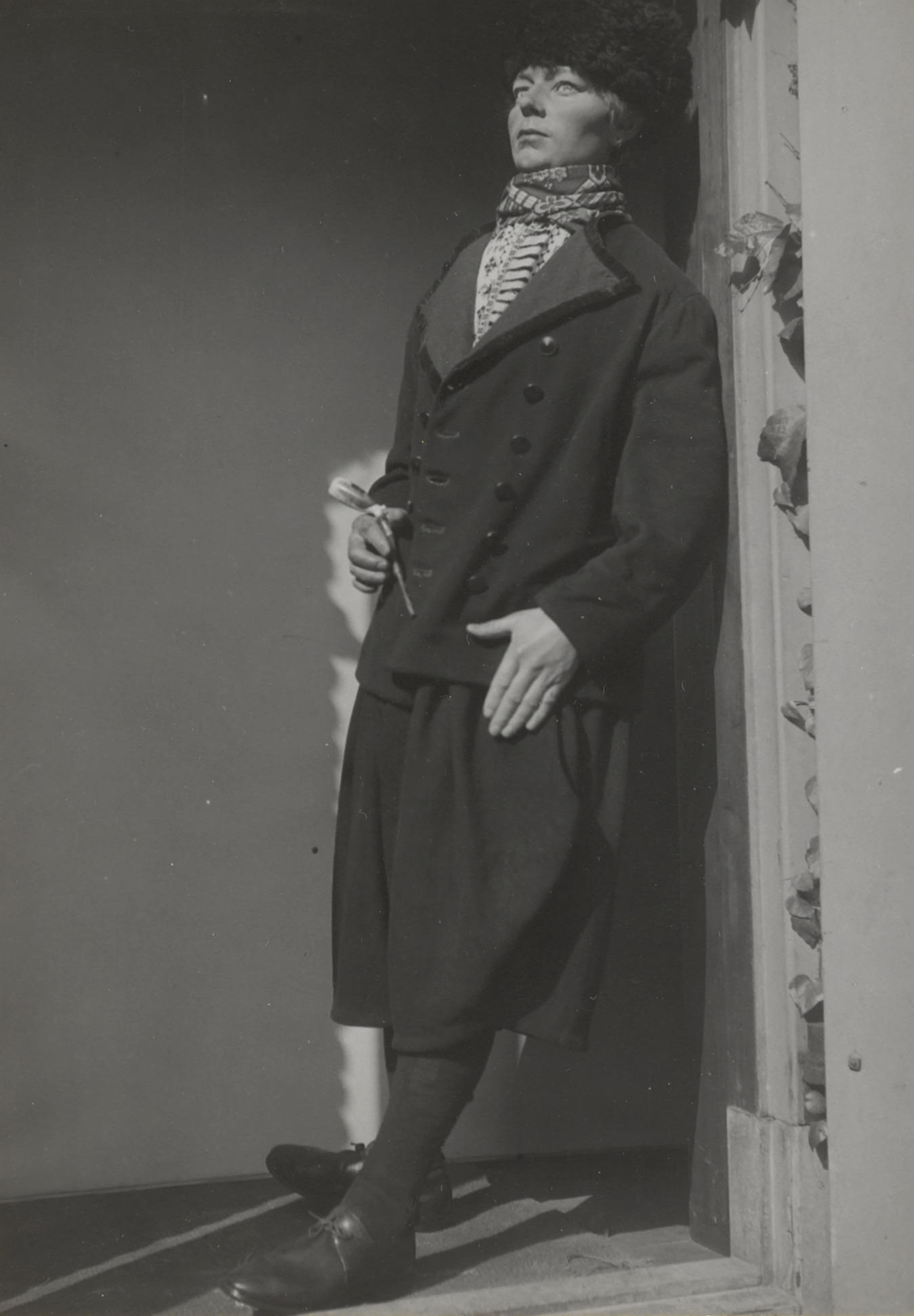 Pop in Volendammer streekdracht, gefotografeerd tijdens de ontruiming van de streekdrachttentoonstelling in het Nederlands Openluchtmuseum vanwege de evacuatie van de museumcollectie in 1943. Het is niet duidelijk of deze pop onderdeel was van de 1898-tentoonstelling.