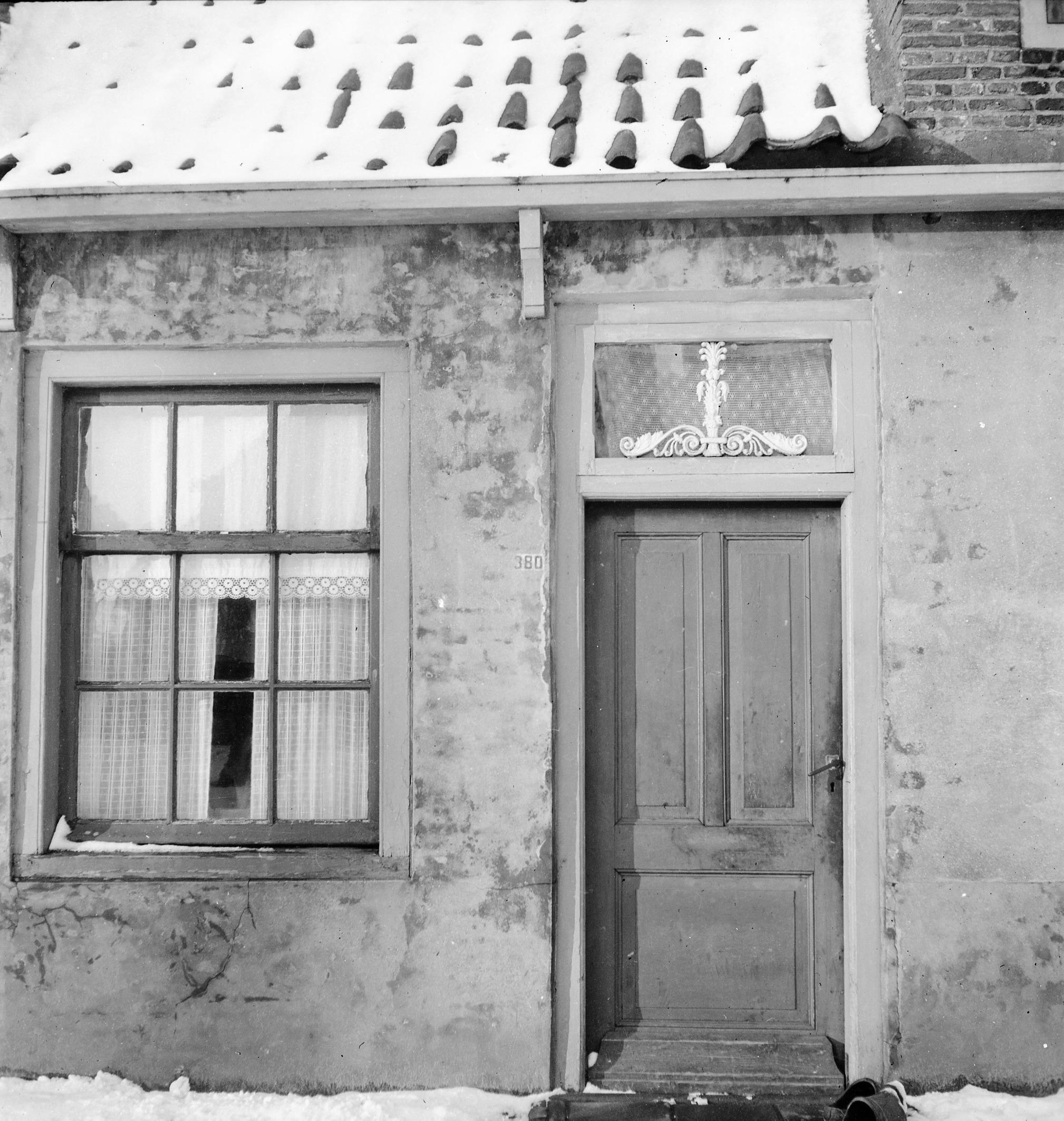 Arbeiderswoning aan de Slotweg in Egmond aan den Hoef. Boven de deur is een bovenlicht met een ornament te zien.