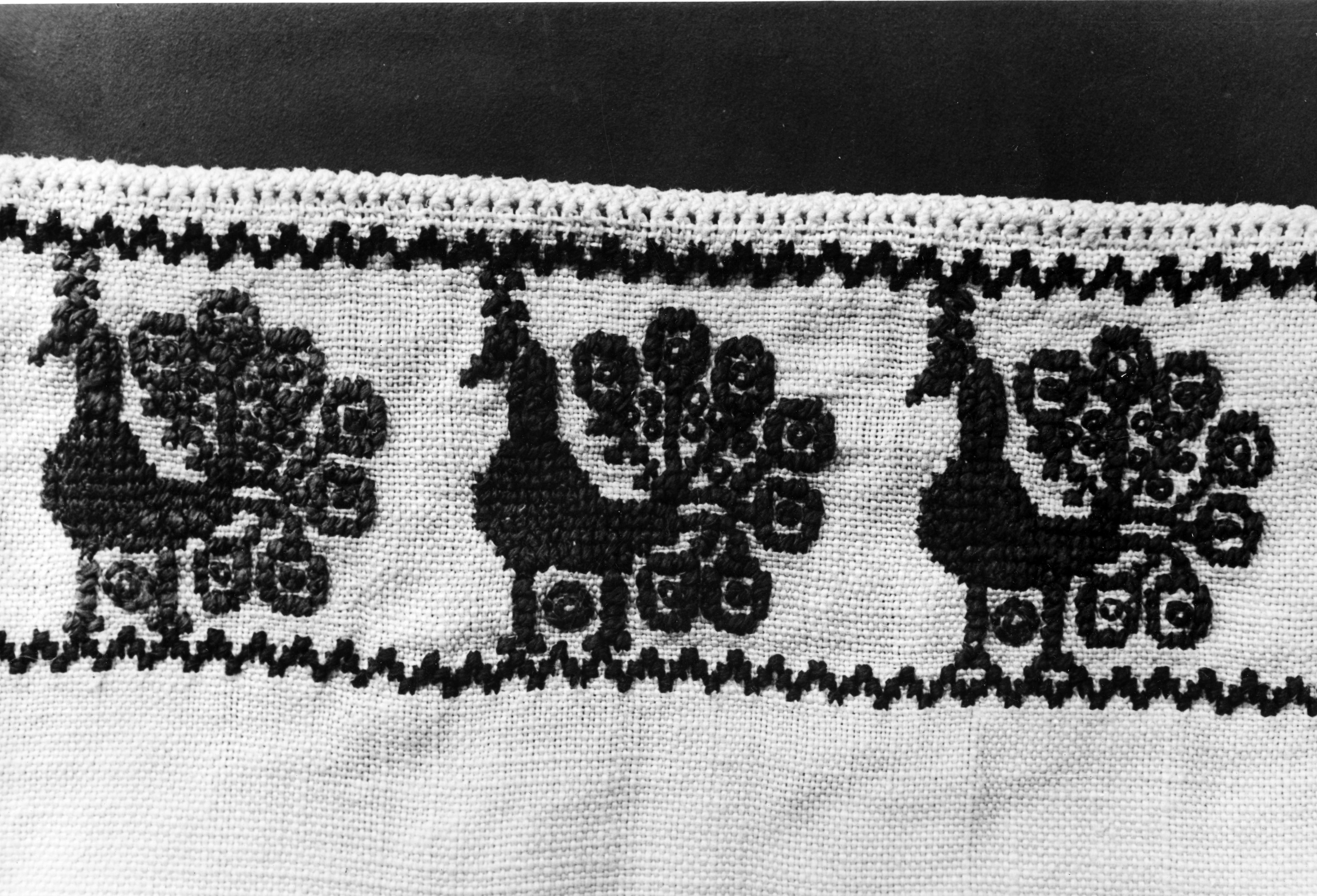 Kruissteekborduurwerk op kussensloop, Marken, 1943 (zwart-wit foto)
