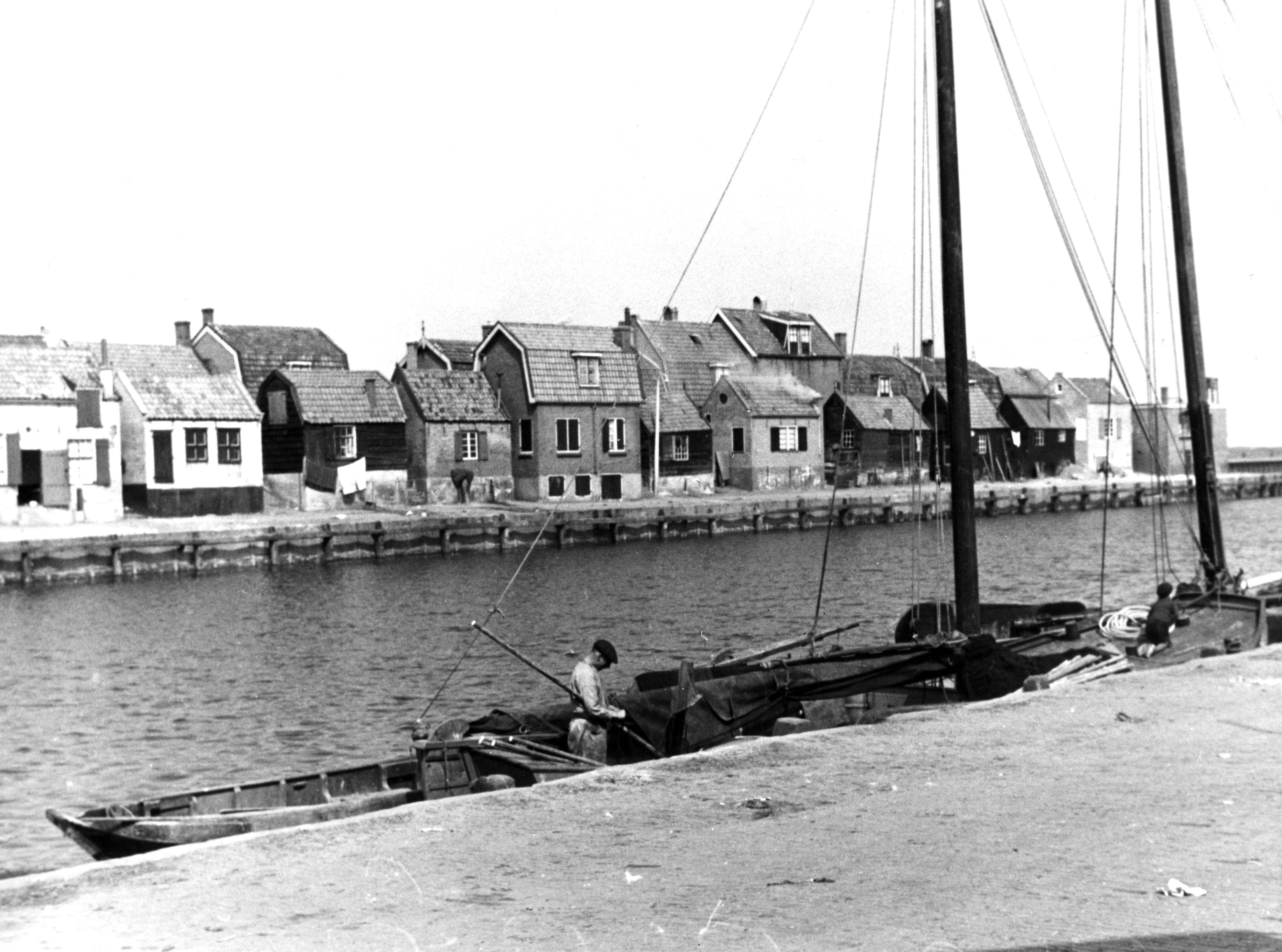 Visserswoningen aan de haven, Spakenburg, 1942 (zwart-wit negatief)