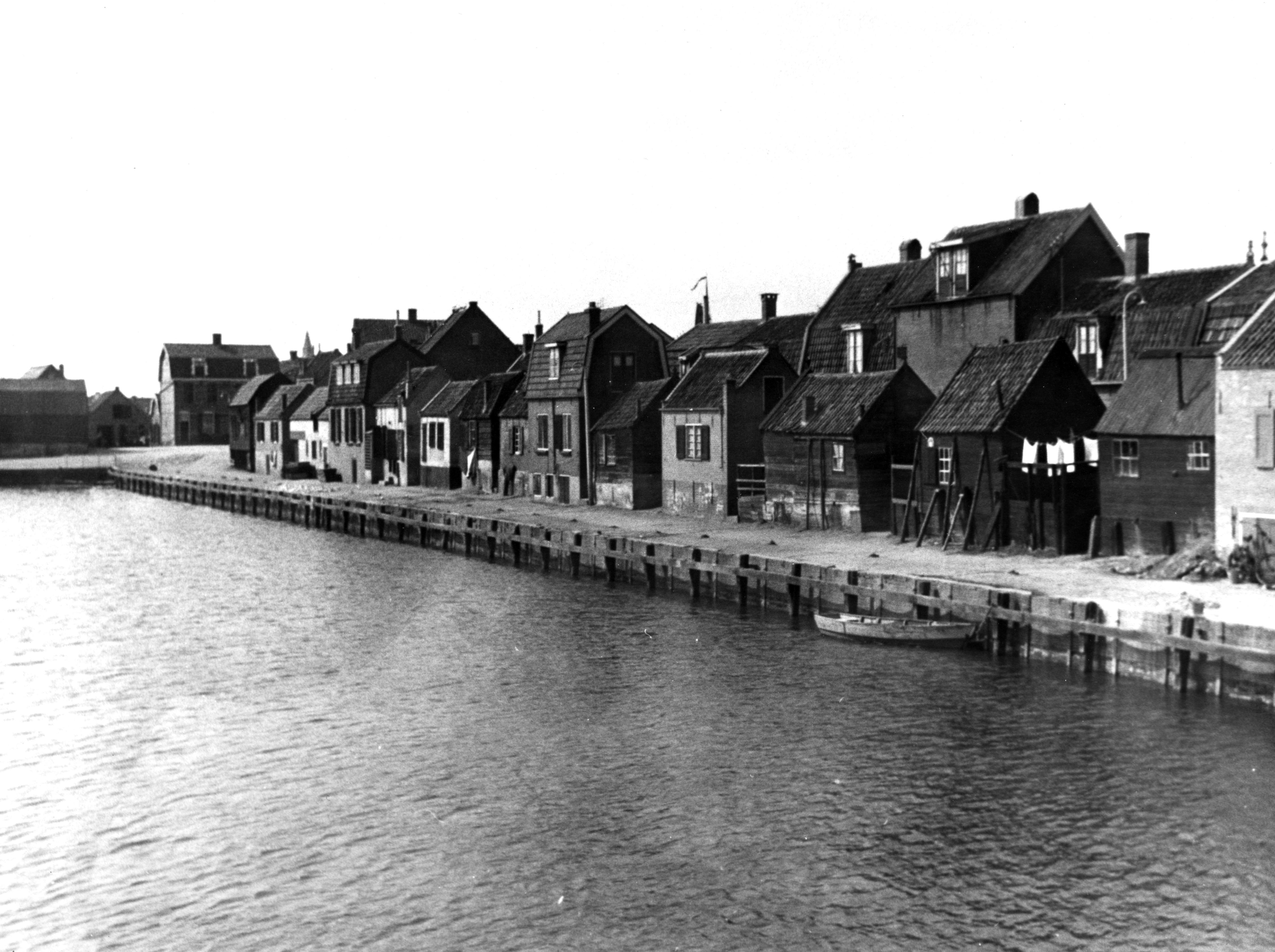 Haven met visserswoningen, Spakenburg, 1942 (zwart-wit negatief)