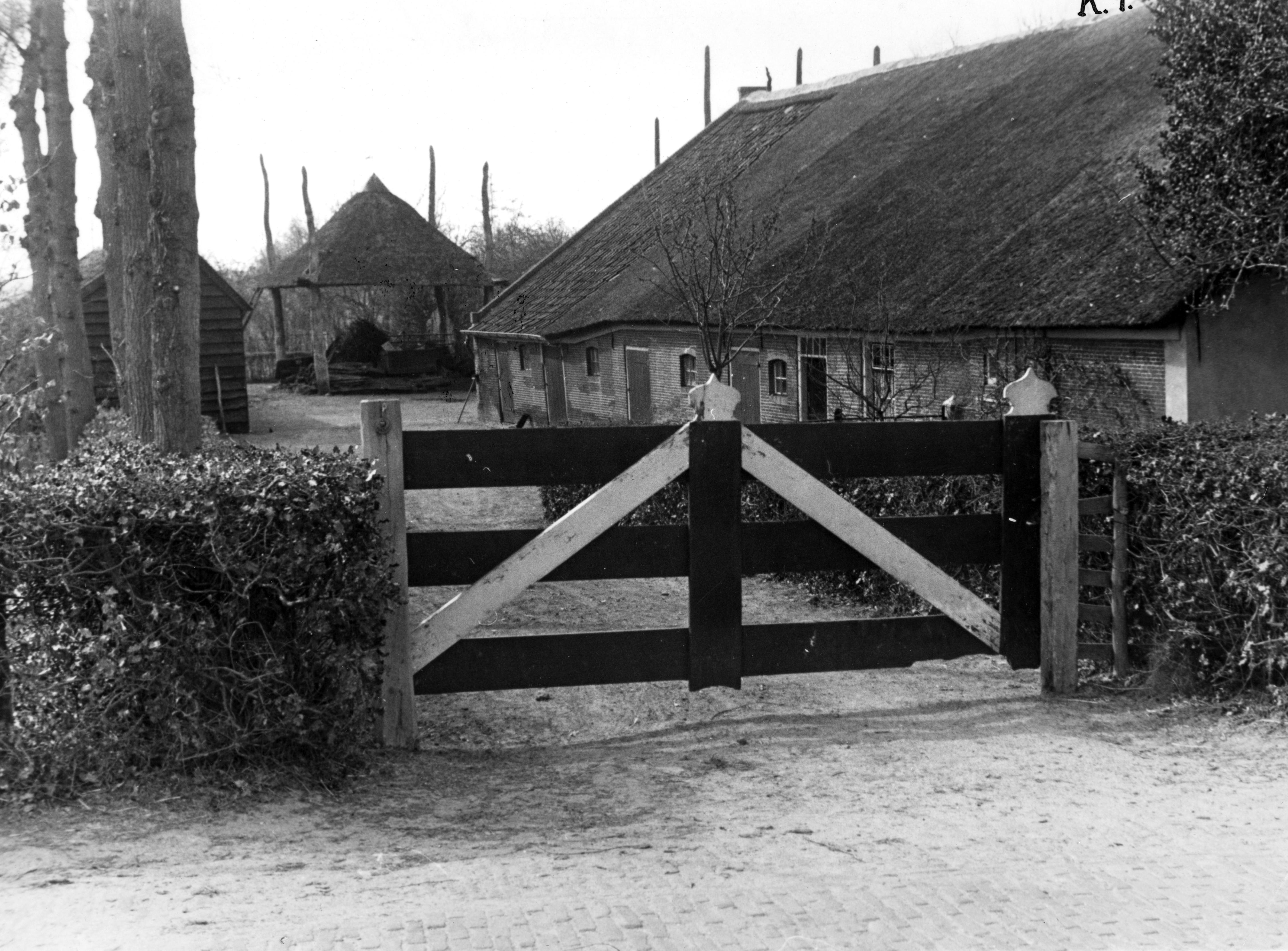Erf van een boerderij, Kamperzeedijk, 1942 (zwart-wit negatief)