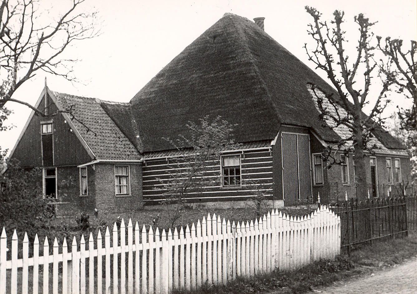Noord-Hollandse stolpboerderij in Oosterblokker. Op de voorgrond staat een houten hekwerk als erfafscheiding.
