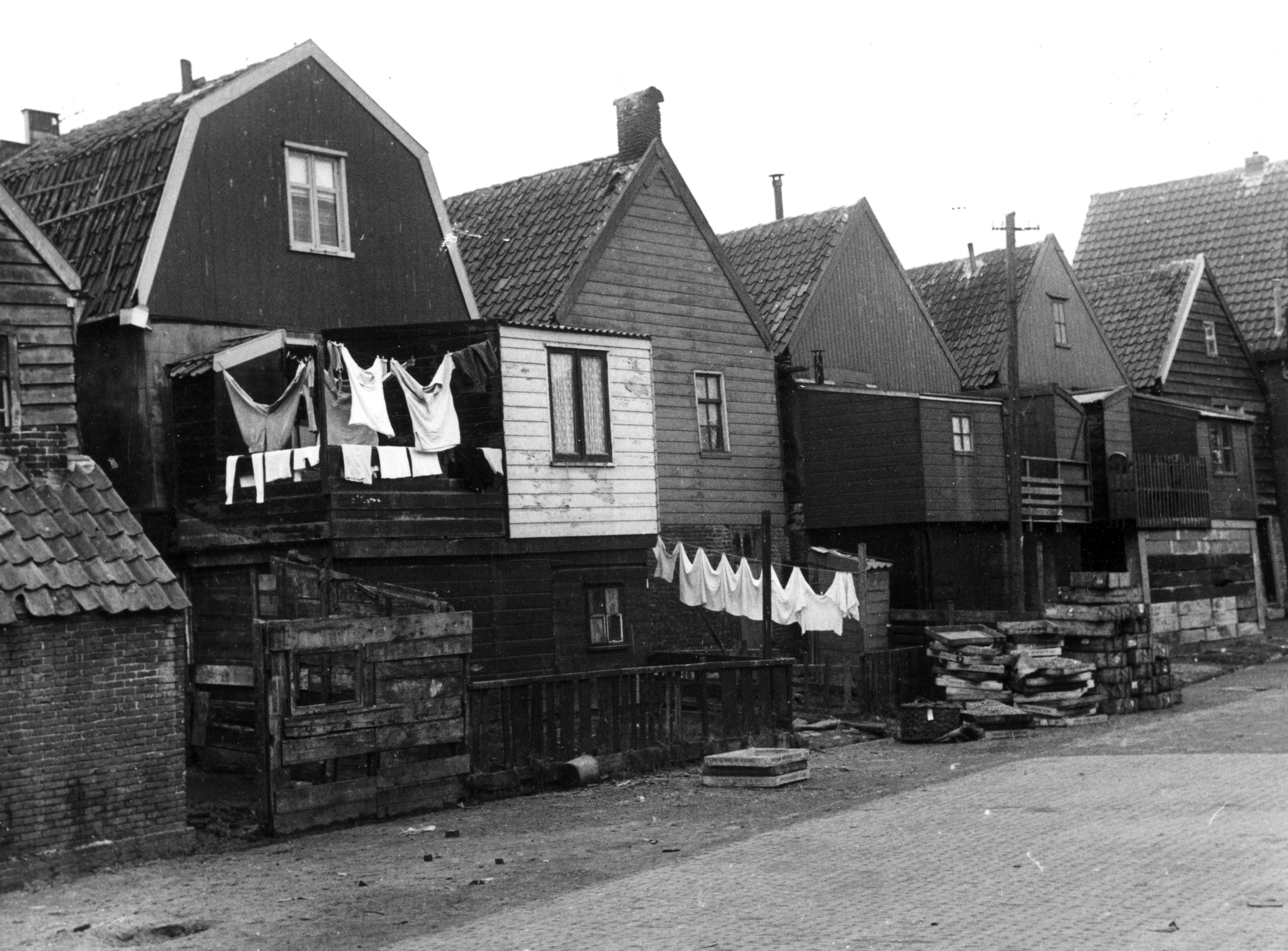 Achterzijde van een rij visserswoningen in Volendam.
