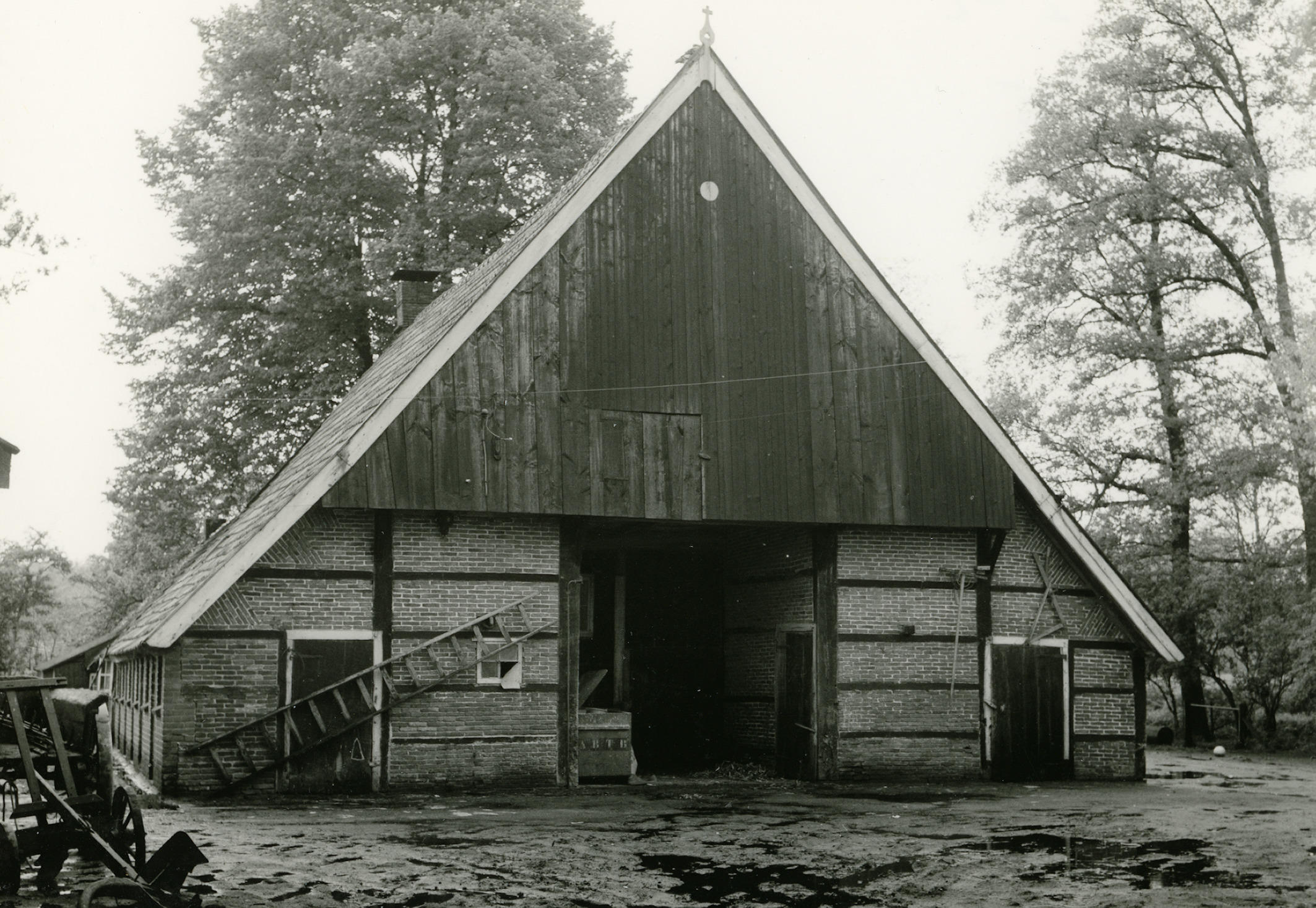 Achtergevel van boerderij 'Erve De Hamerboer' aan de Huijerenseweg 46 in Geesteren. De achtergevel is opgetrokken in vakwerkbouw en heeft een houten topgevel en zogenoemd onderschoer. In de voorgevel van deze boerderij zit een gevelsteen met het jaartal 1847.