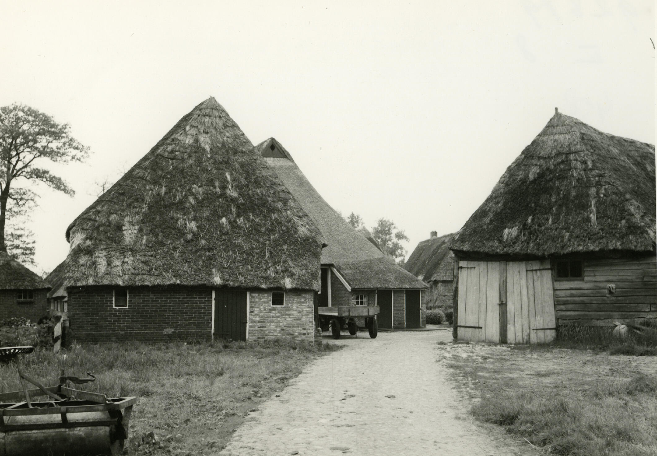 Boerderij aan de Flintenweg 2 in Orvelte. De achtergevel heeft een zogenoemde onderschoer. Links staat een aangebouwde schuur en rechts een vrijstaande schuur. Deze boerderij is van het zogenoemde middenlangsdeeltype. Op het erf staat een wagen met luchtbanden.