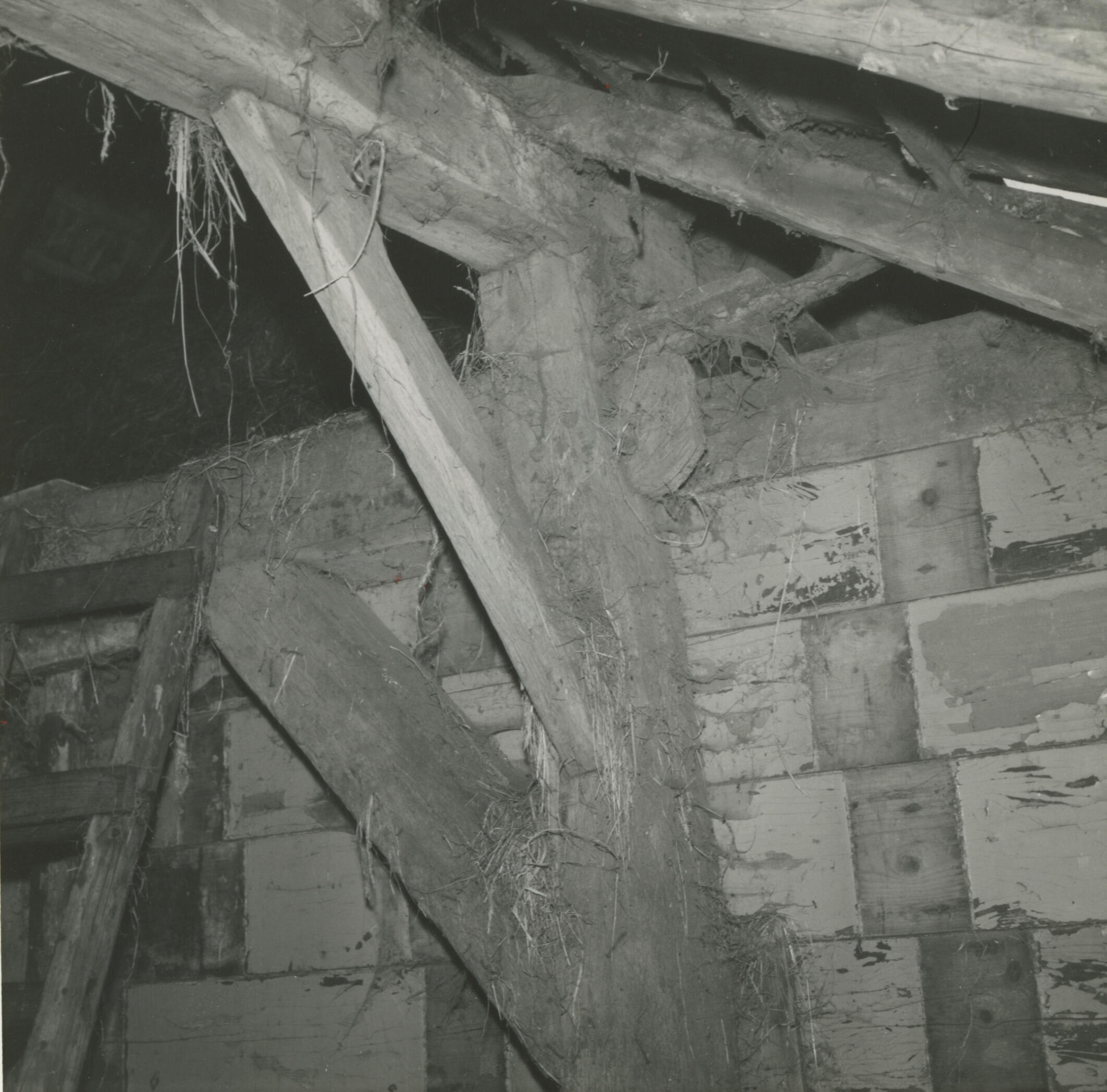 Gebint in een boerderij, Hemrik, 1965 (zwart-wit negatief)