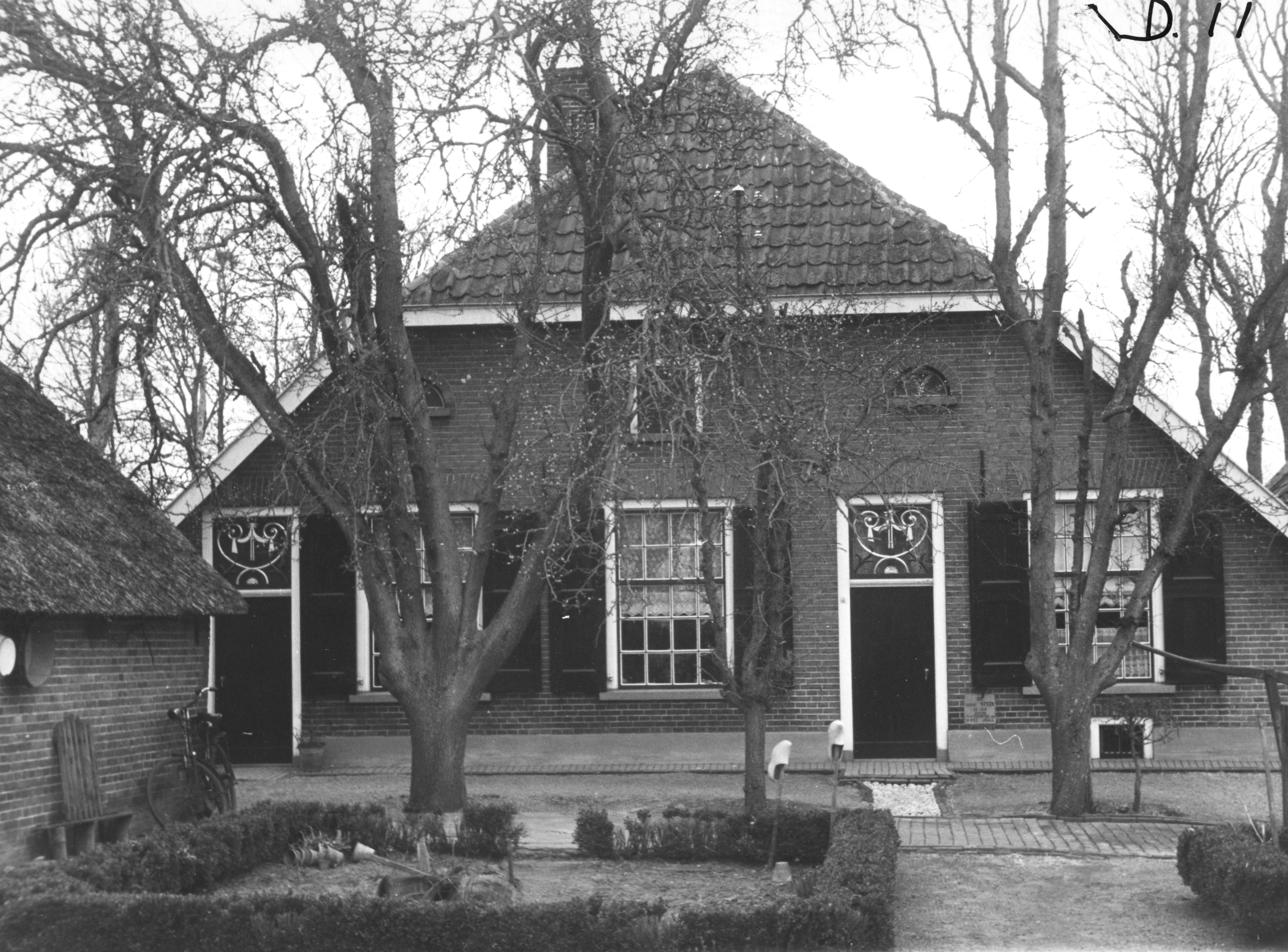 Boerderij in Doornspijk. Boven beide toegangsdeuren is een bewerkt bovenlicht te zien.