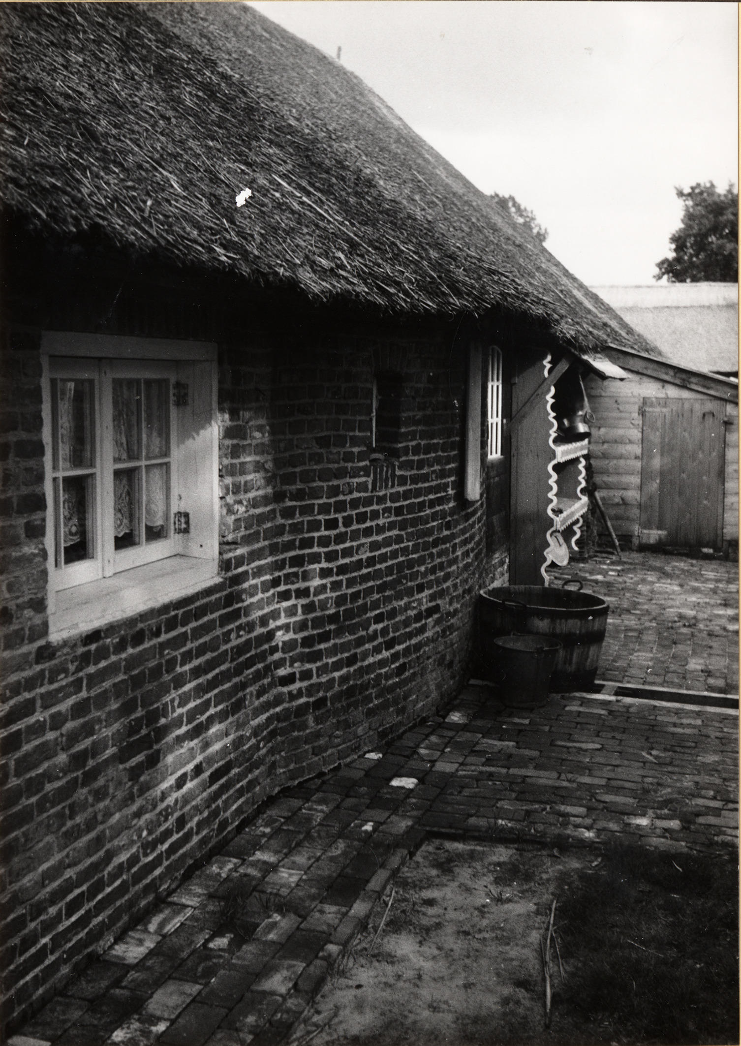Ronde muur bij karnhoek, Staphorst, 1965 (zwart-wit negatief)