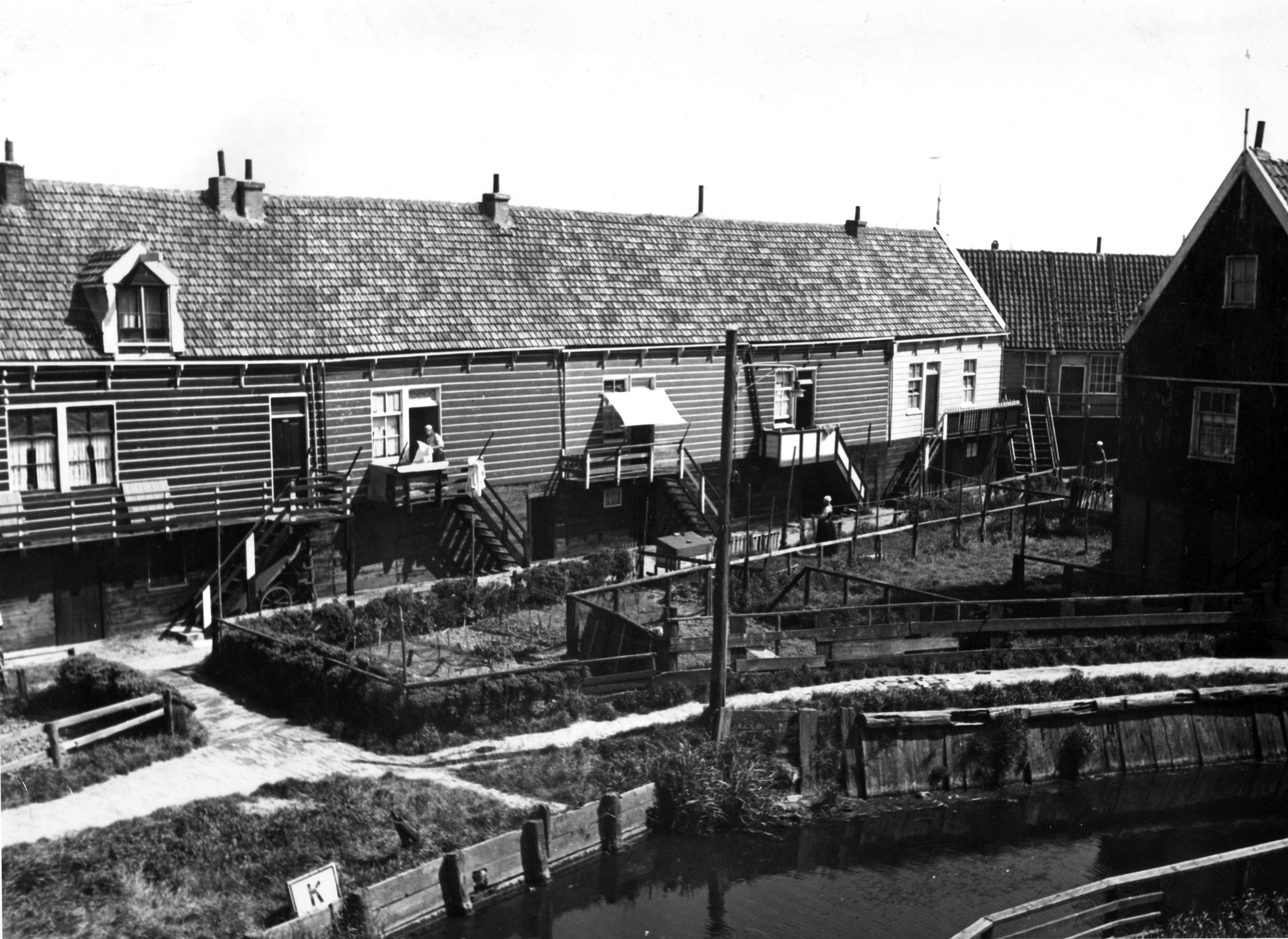 Visserwoningen op Marken. Dit complex huizen werd op Marken 'Moskou' genoemd.