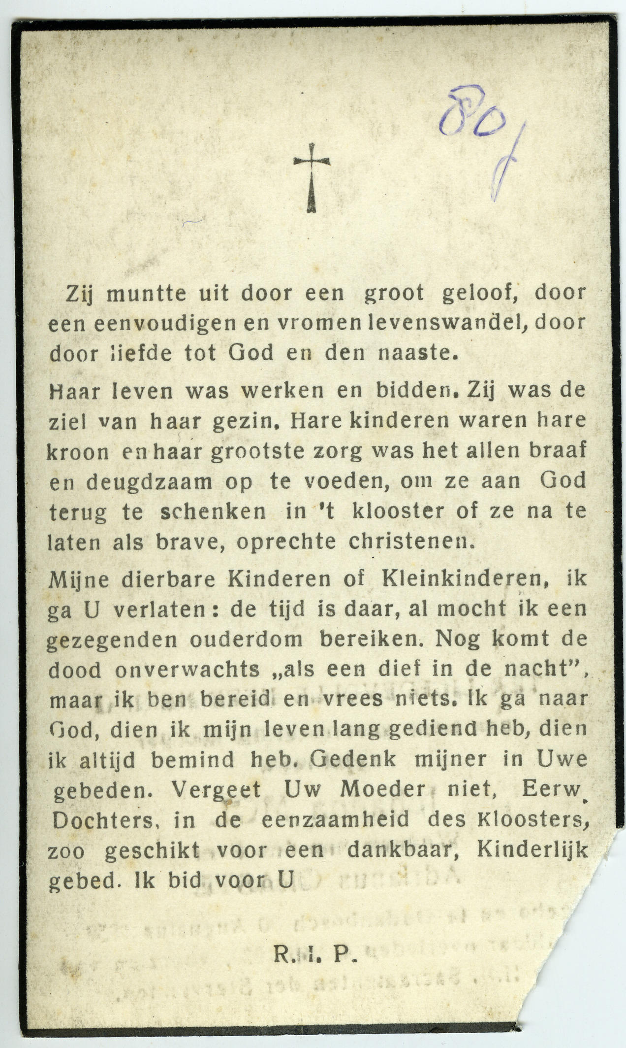 Bidprentje van Johanna Mol, 1938 (bidprentje)