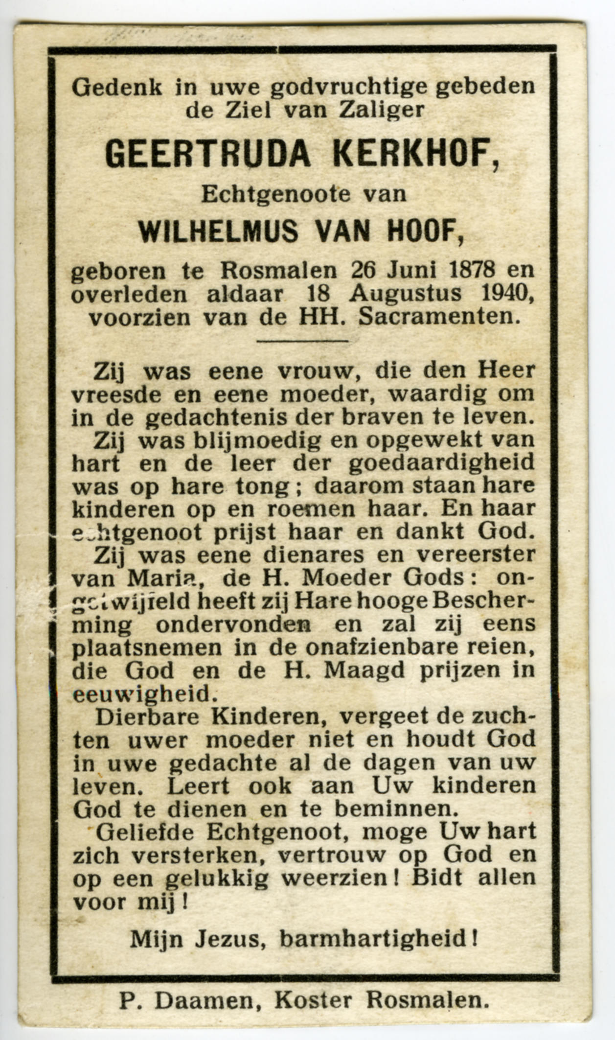 Bidprentje van Geertruda Kerkhof, 1940 (bidprentje)