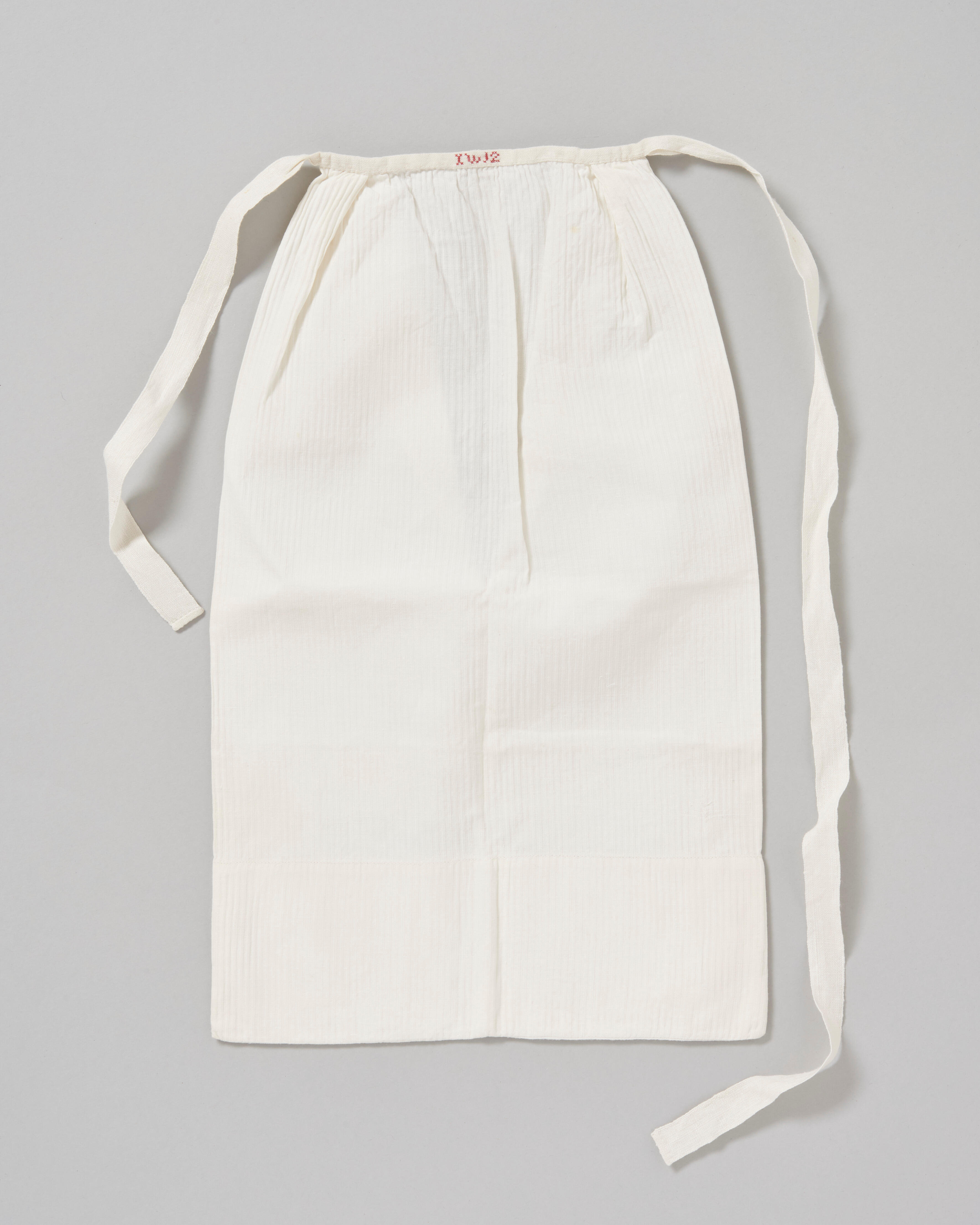 Een zijzak, gedragen door een vrouw in streekdracht uit de provincie Groningen. De zak werd onder de bovenste rok gedragen, waarbij de banden om het middel werden gestrikt. Via een split in de bovenrok kon de draagster bij de zijzak komen. Deze zijzak is gemaakt van witte katoen met ingeweven verticale ribbels. Onderaan de split ...