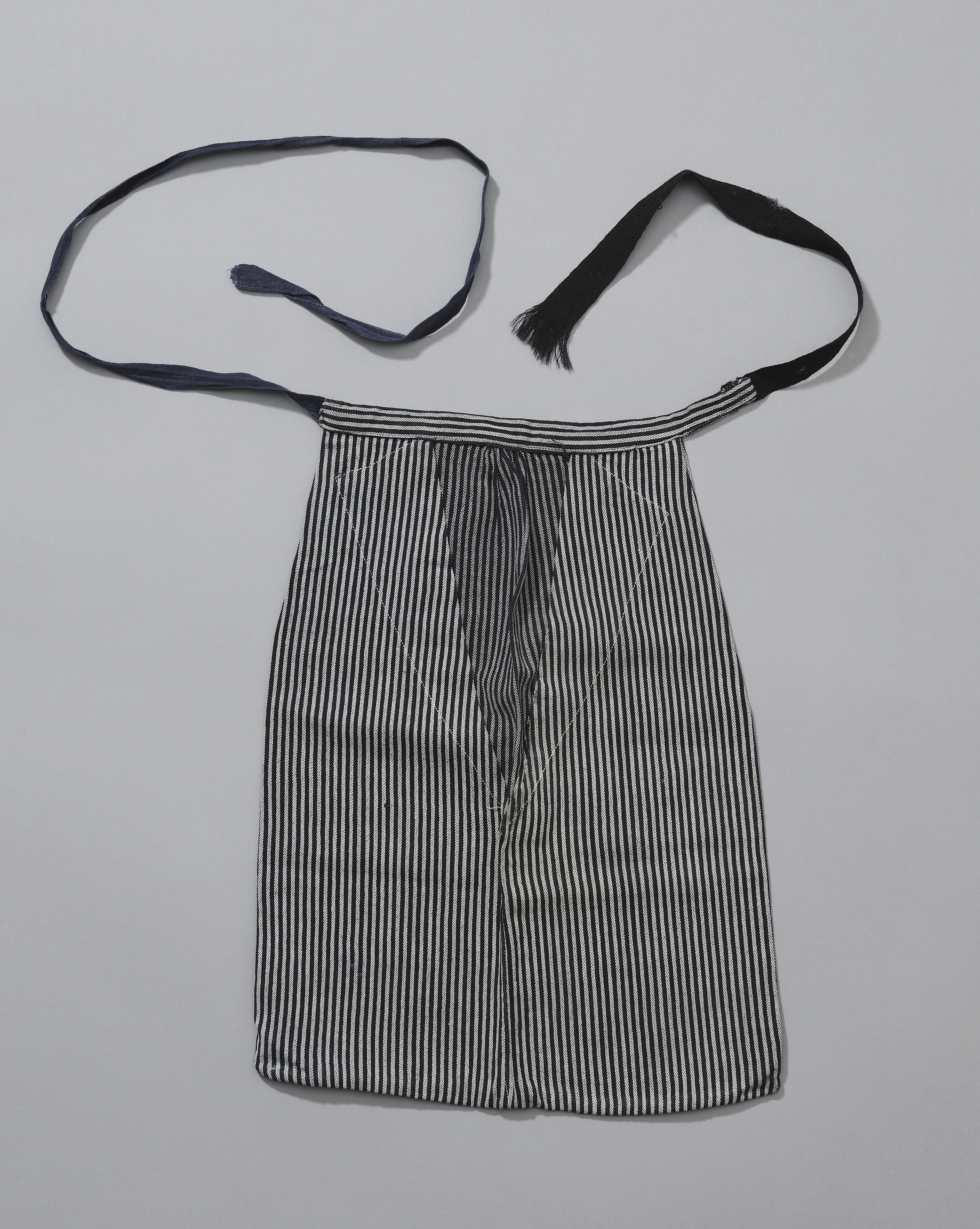 Blauw gestreepte katoenen zijzak. Zakken waren vroeger niet gebruikelijk in vrouwenkleding. Vanaf de zeventiende eeuw kwamen losse zij- of dijzakken in gebruik. Ze werden aan een bandje om taille gedragen, onder de bovenste rok. Via een split in de rok was de zijzak bereikbaar. In de streekdrachten bleven de zijzakken tot ver in de twintigste ...