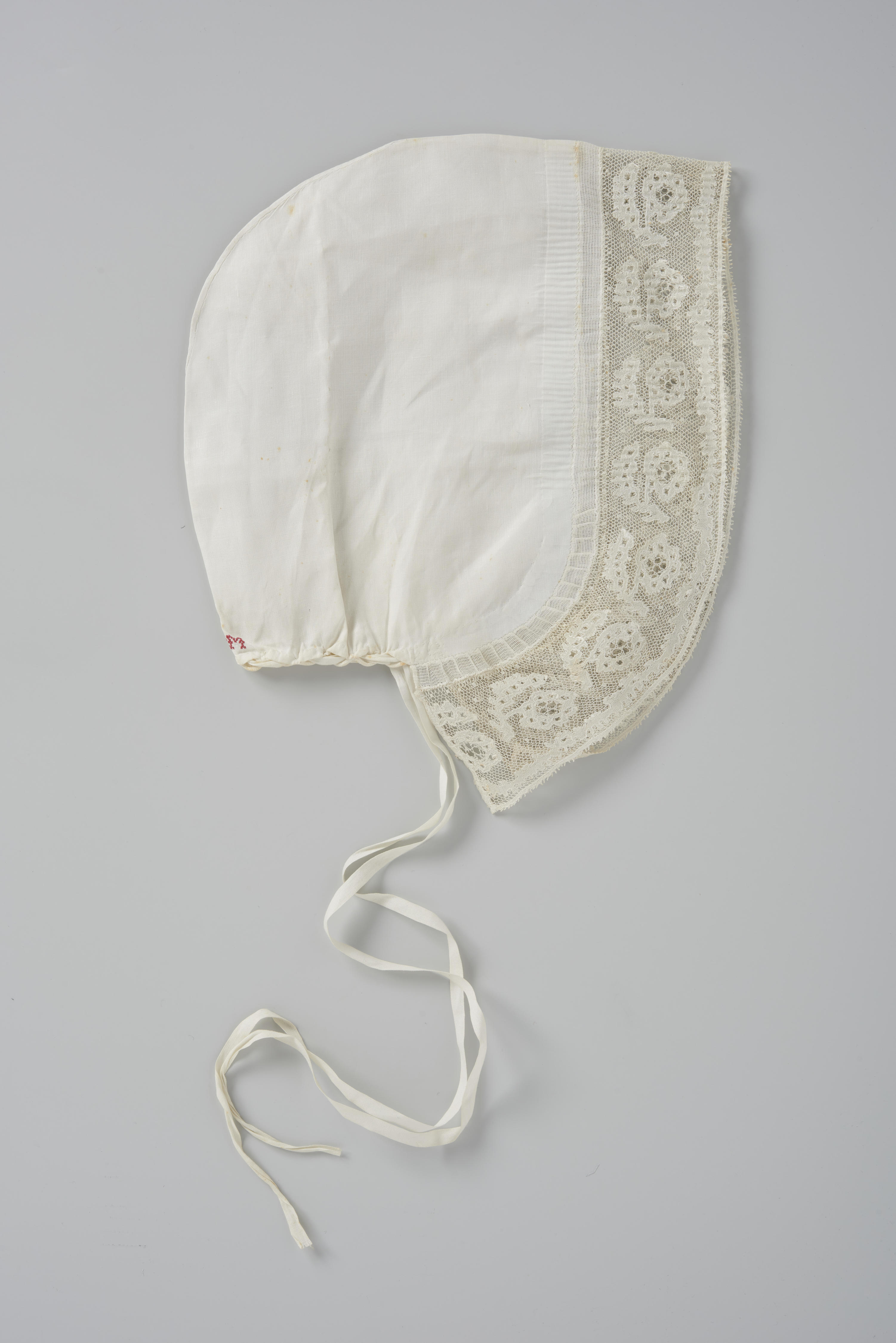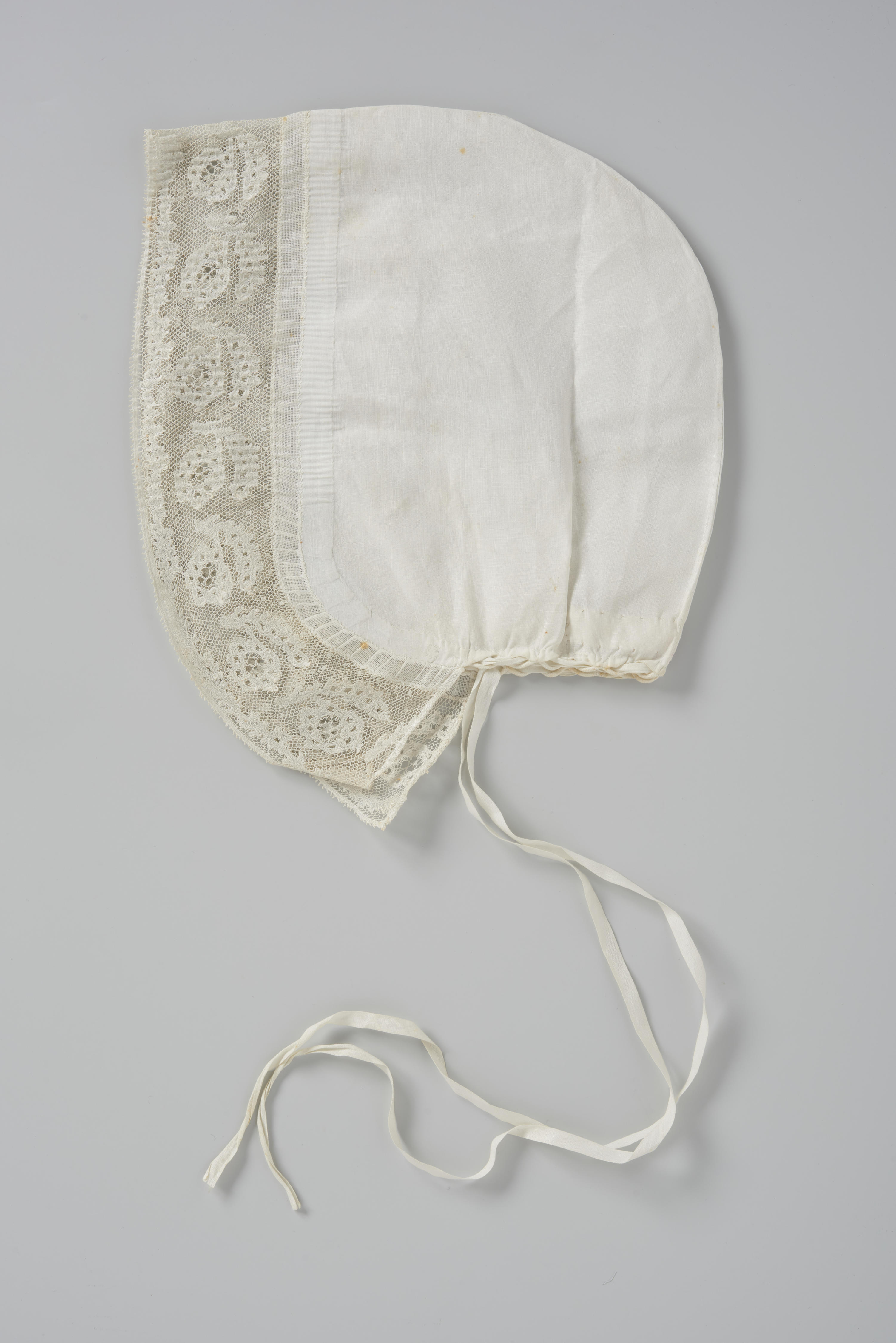 Zogenoemde 'hul' of neepjesmuts', gedragen door een vrouw of meisje uit Bunschoten of Spakenburg. De bol is van effen linnen of katoen. De voorstrook is van Rijselse kloskant, verbreed met een strookje mutsengaas. Onderaan, rechts van de achternaad, is de letter M (voorletter van de eigenares) geborduurd in rode kruissteekjes. Dergelijke hullen waren tot in ...