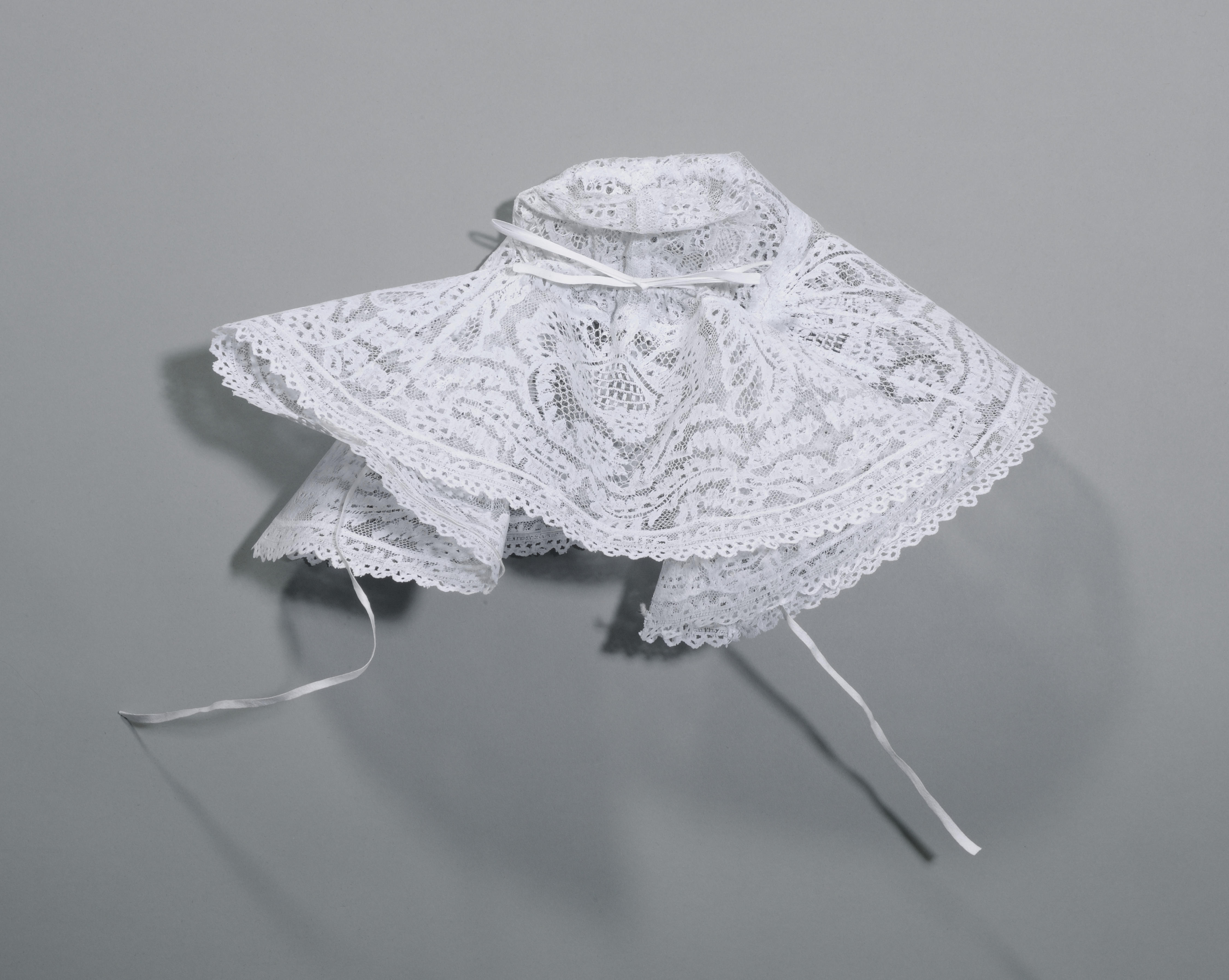 Muts, afkomstig uit Arnemuiden. Na binnenkomst in het museum in 1964 is de muts in 1970 gewassen en opnieuw opgemaakt. Daarbij is de originele bol vervangen door één van ander materiaal.