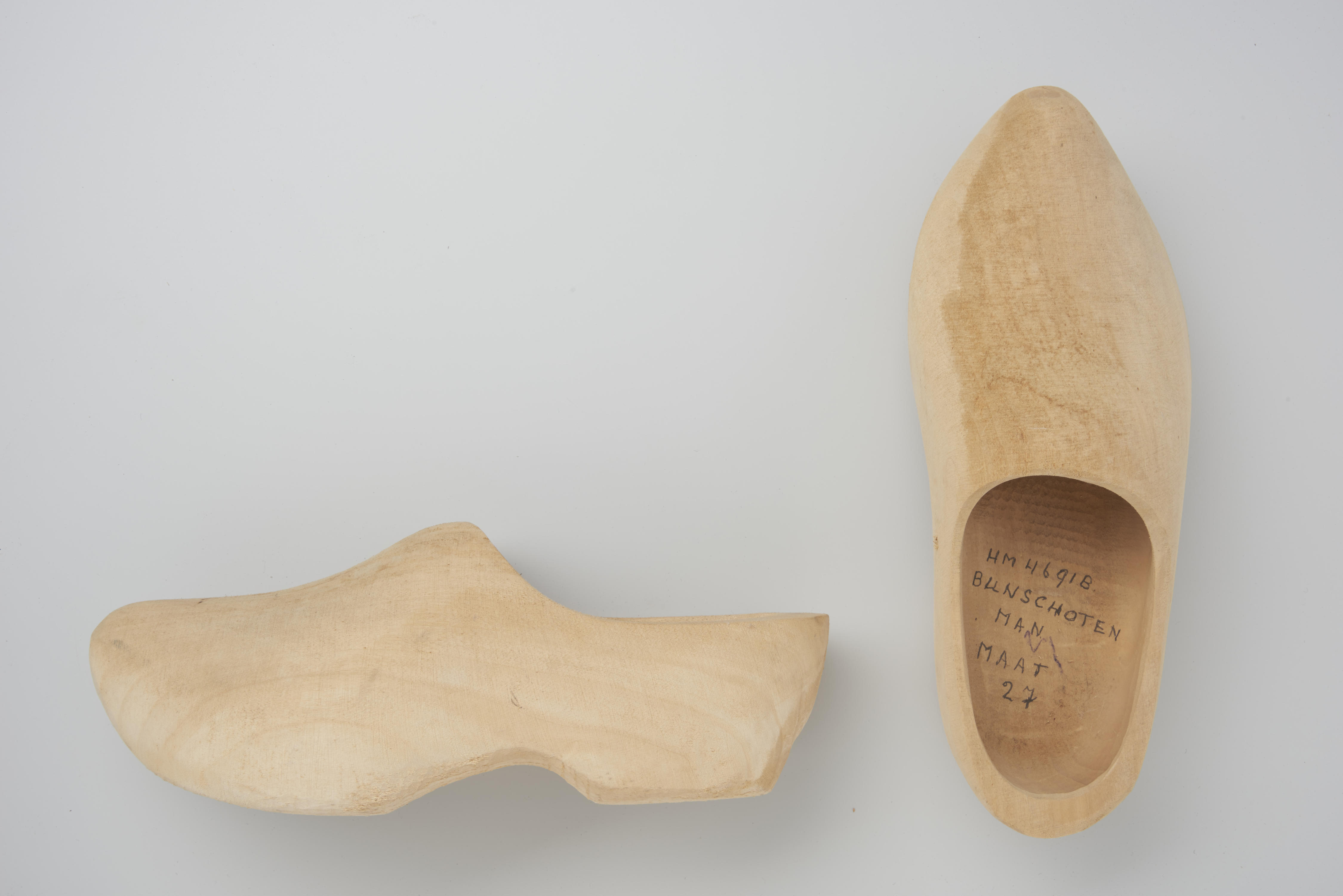 Paar mannenklompen, gemaakt naar voorbeeld van Bunschoter klompen uit circa 1930.