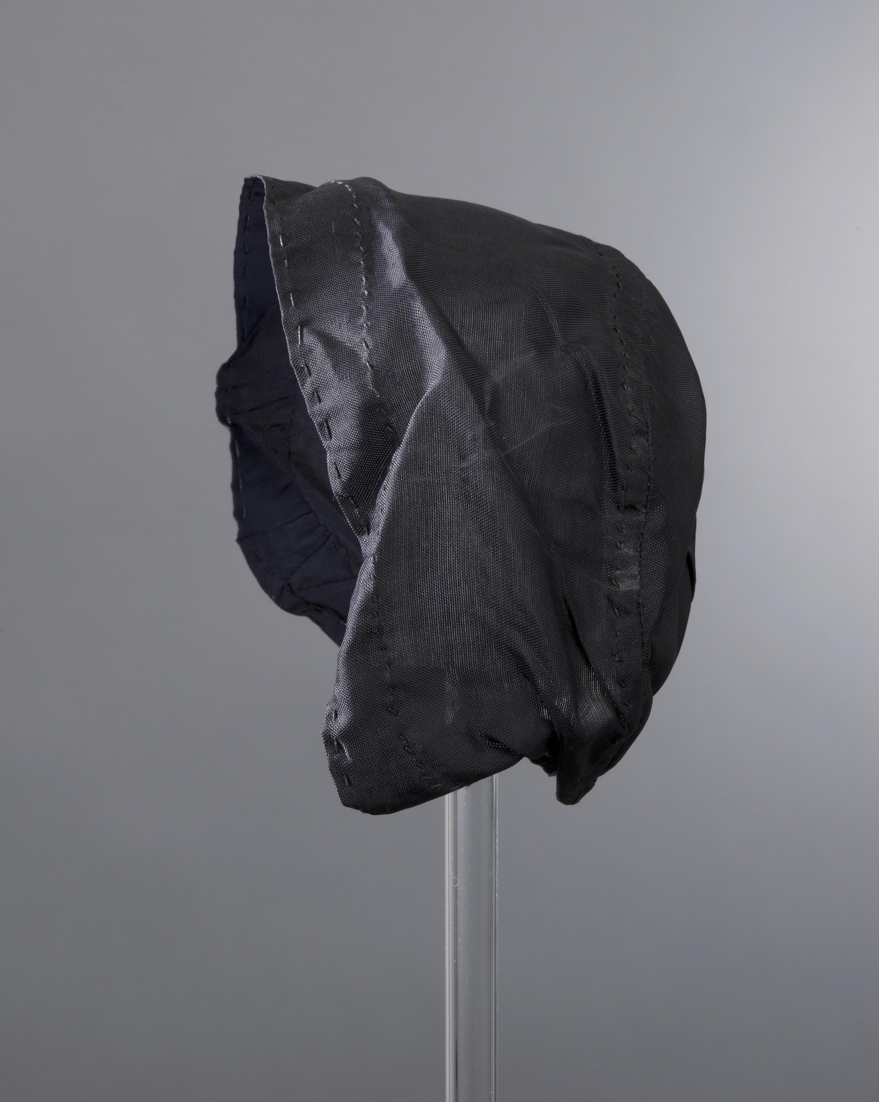Satijnen ondermutsje voor onder het geborduurd tulen mutsje, zoals gedragen door een bakerkindje in Bunschoten en Spakenburg tijdens de eerste levensweken.