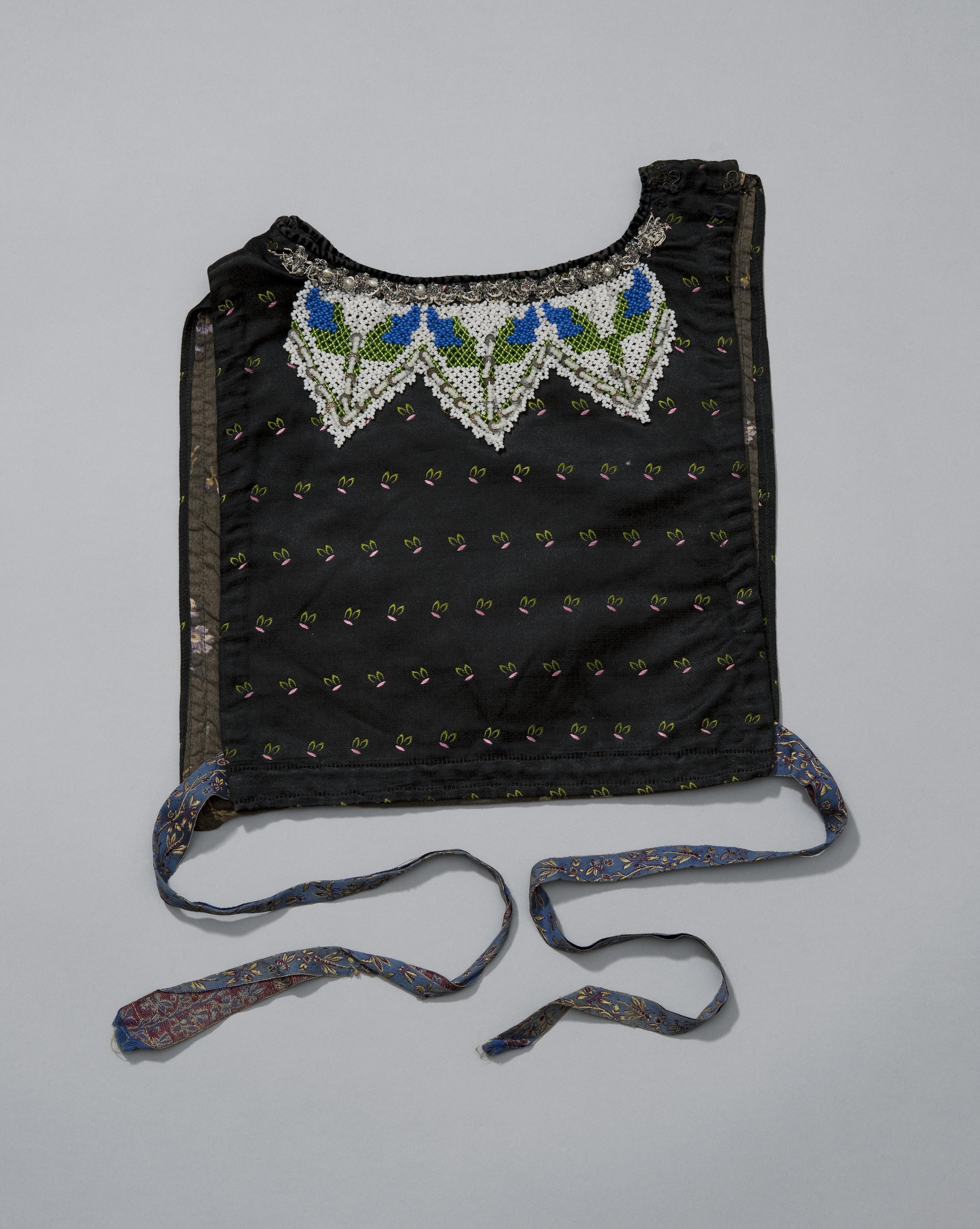 Daagse beuk met versiering van zogenaamd kraaltjes-kraalwerk. Beuken met kraaltjes-kraalwerk, in patroon geregen glaskraaltjes van dezelfde grootte, werden doordeweeks gedragen. De beuken met kraalstukken van kralen, kant en pailletten waren voor de zondag.