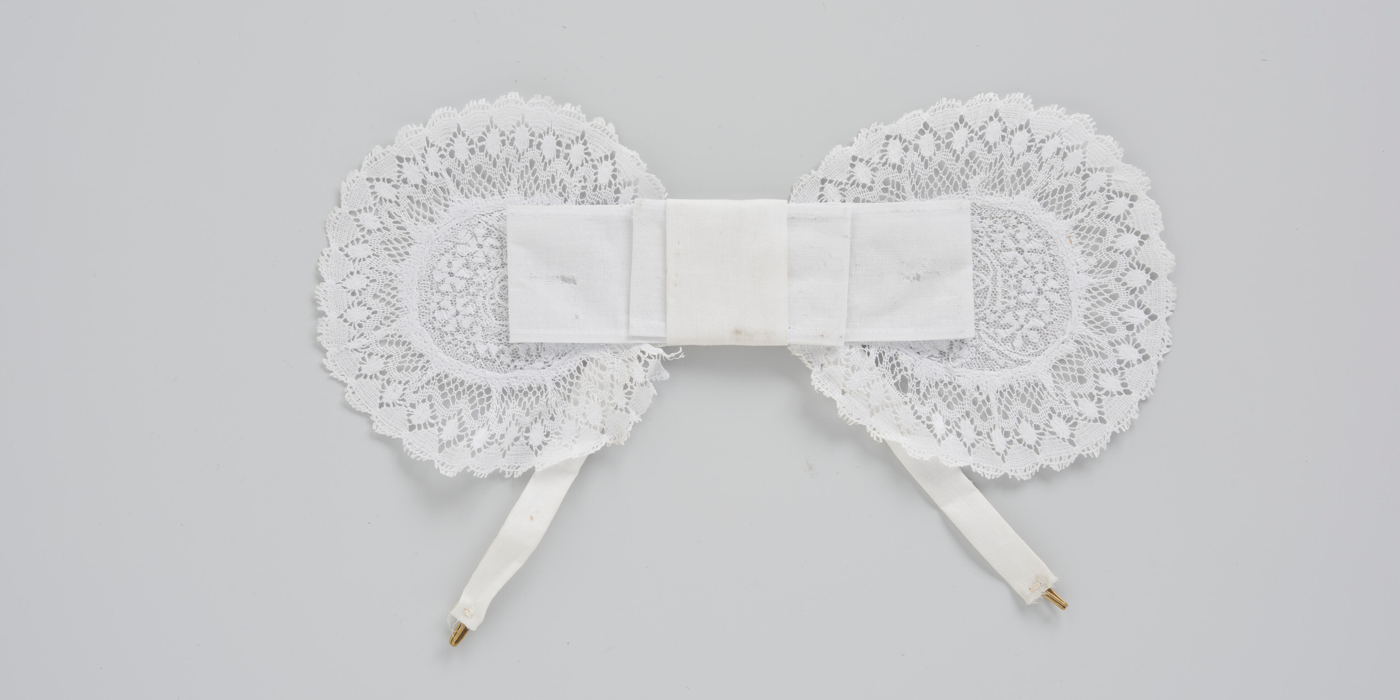Losse sierstrik, behorend bij een daagse opknapmuts of zogenaamde driestrookjesmuts.