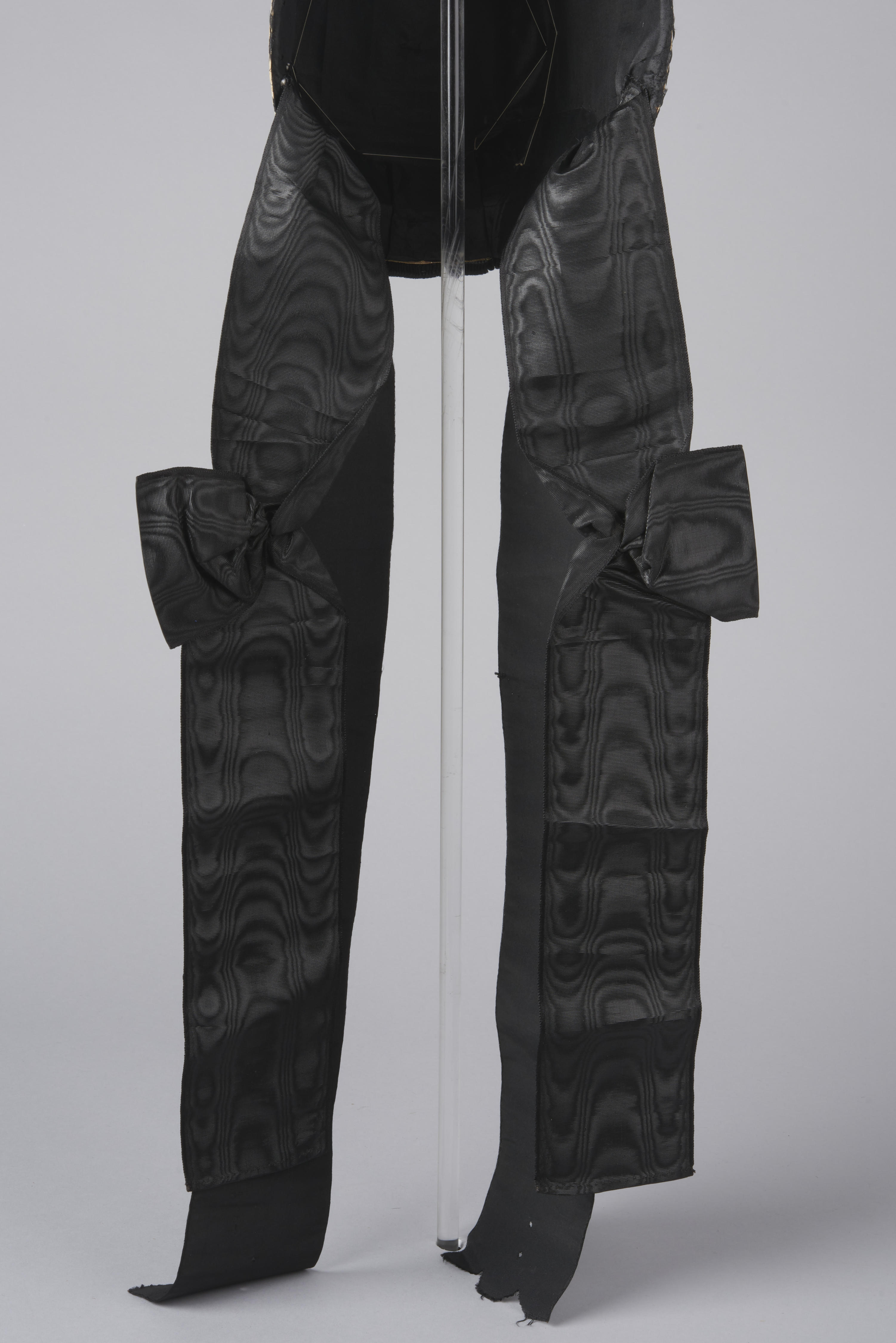 Kaphoedlinten van zwarte moiré zijde voor in de rouw, afkomstig uit Domburg.