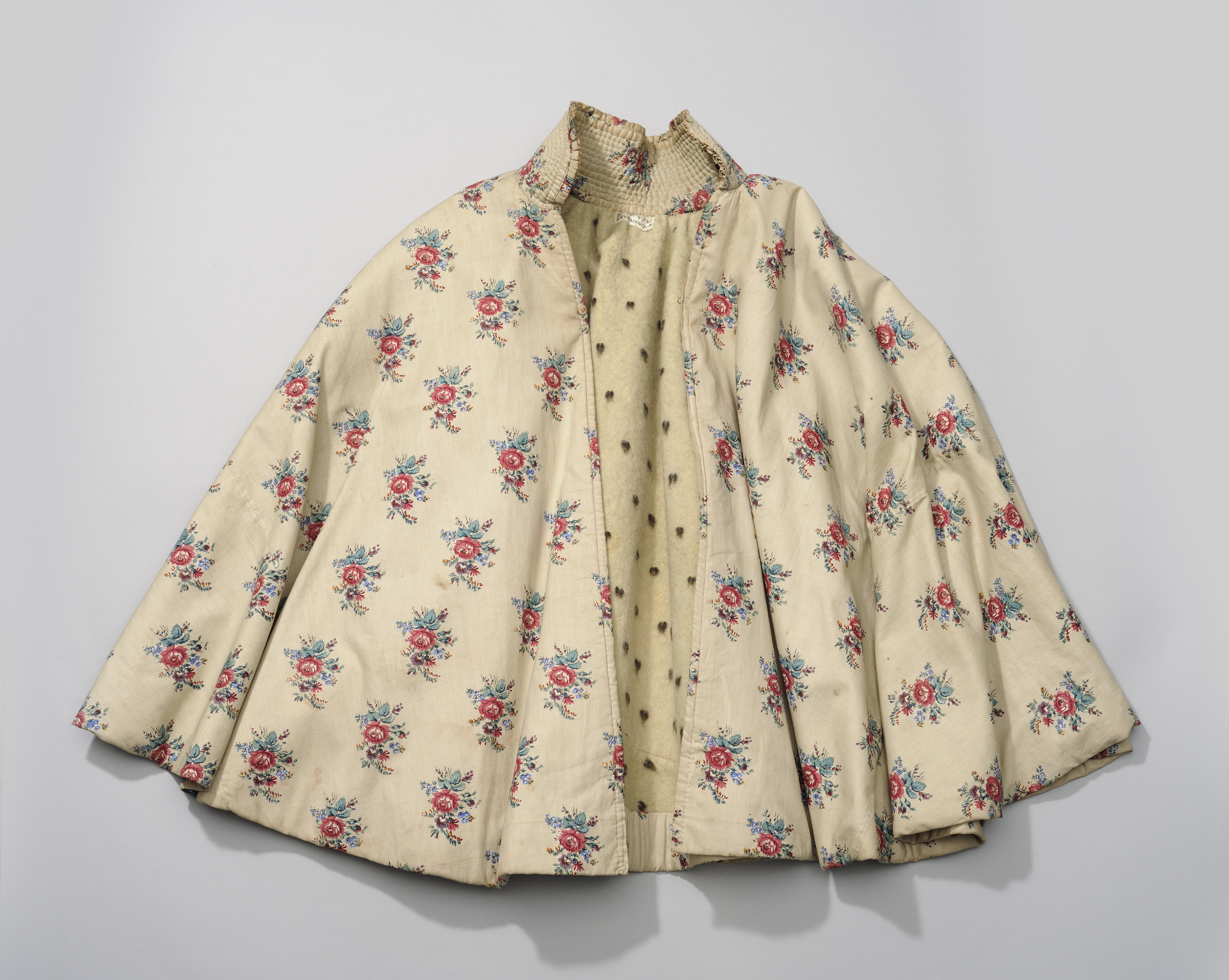 Korte cape of schoudermantel van bedrukte katoen met een wollen voering. Schoudermantels of capes raakten omstreeks 1770 algemeen in de mode. In het midden van de negentiende eeuw werden ze in verschillende drachten steeds meer vervangen door grote omslagdoeken.