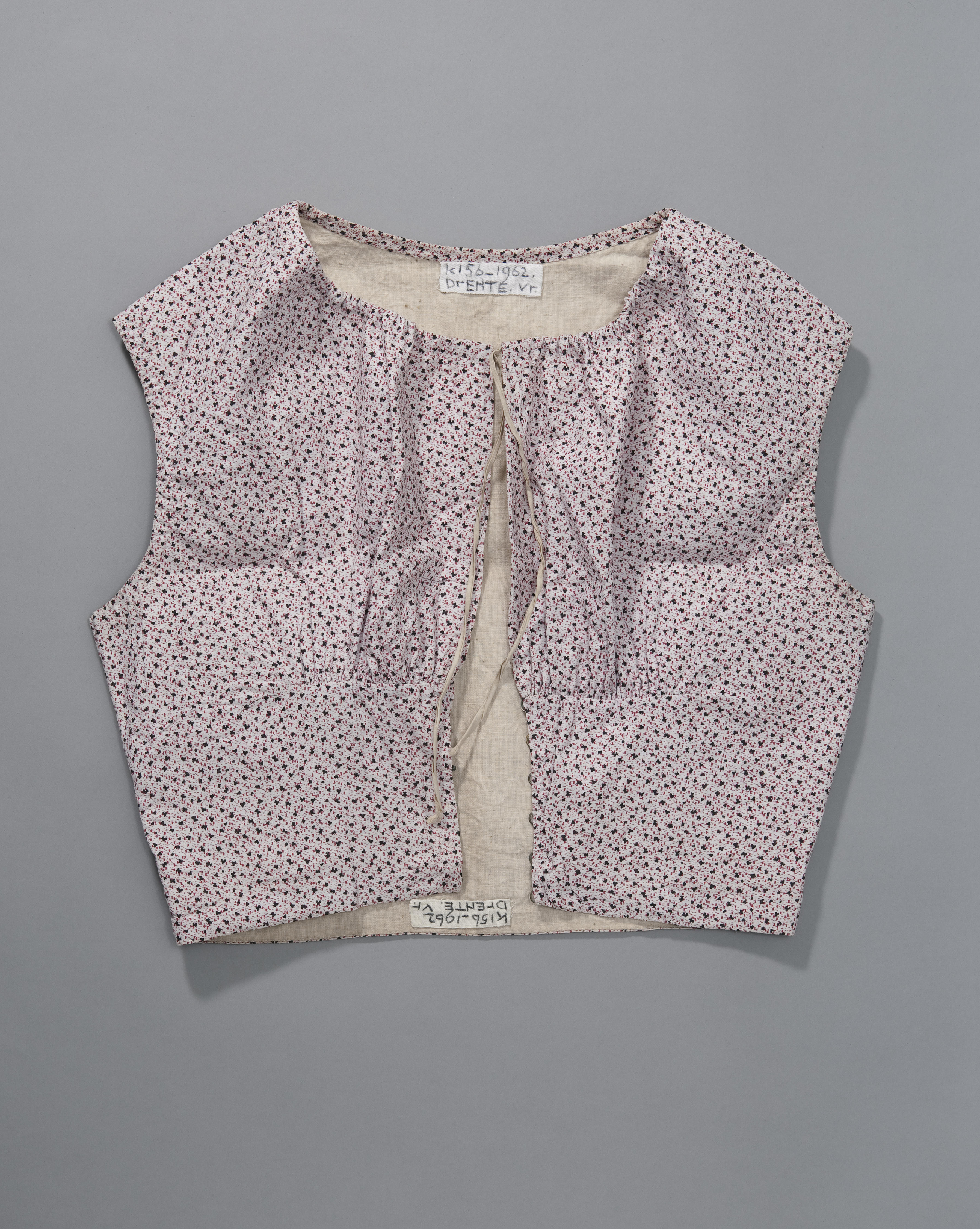 Onderlijfje of rompke van gedessineerde katoen, gevoerd met crèmekleurig linnen. Het rompke komt vermoedelijk uit de omgeving van Emmen.