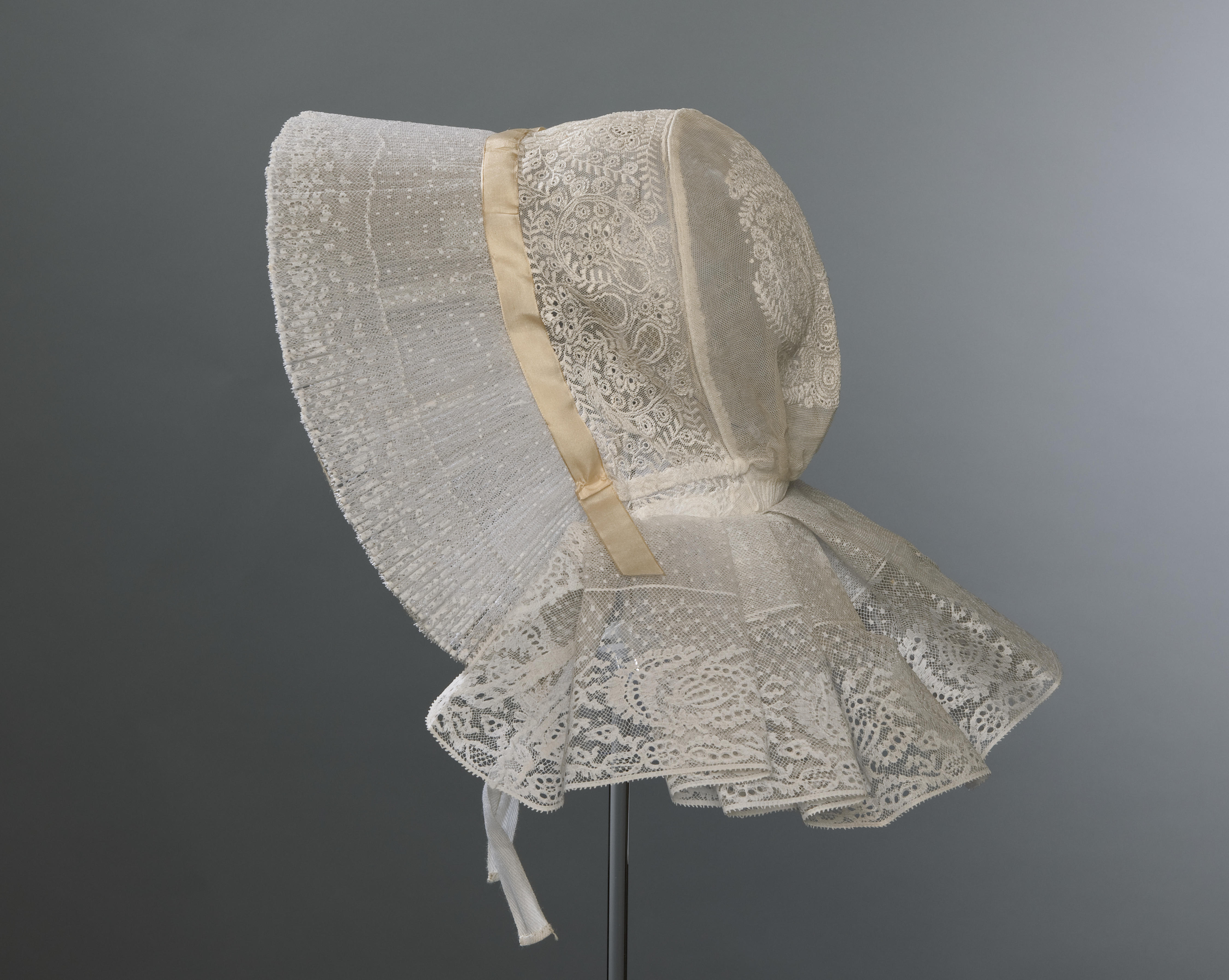 Zondagse plooimuts voor een ouder meisje. Dergelijke plooimutsen werden gedragen door meisjes uit meer welgestelde families. Als een meisje volwassen werd, werd de muts verwisseld voor de oorijzermuts. Deze muts was voor de Tweede Wereldoorlog al verdwenen uit het straatbeeld.