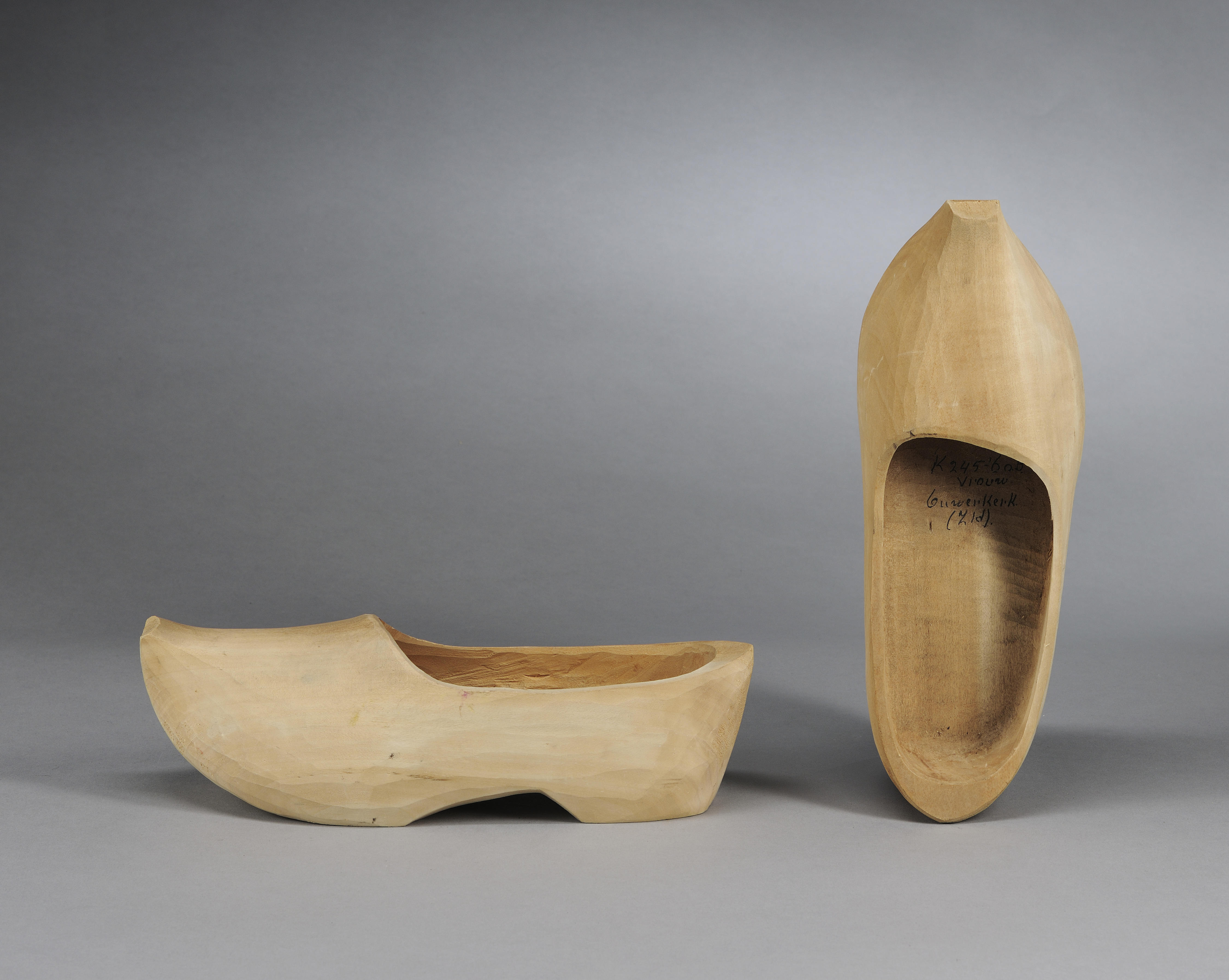Miniatuurvrouwenklompen van het Ouwerkerker type. De klompen zijn van wilgenhout en met de hand gemaakt door de Nijmeegse klompenmaker J. de Kroon. Klompen zijn niet uniek voor Nederland, maar er wel veel gedragen. Ze waren het daagse schoeisel van mannen, vrouwen en kinderen. Mensen die het zich konden veroorloven droegen voor netjes leren schoenen of ...