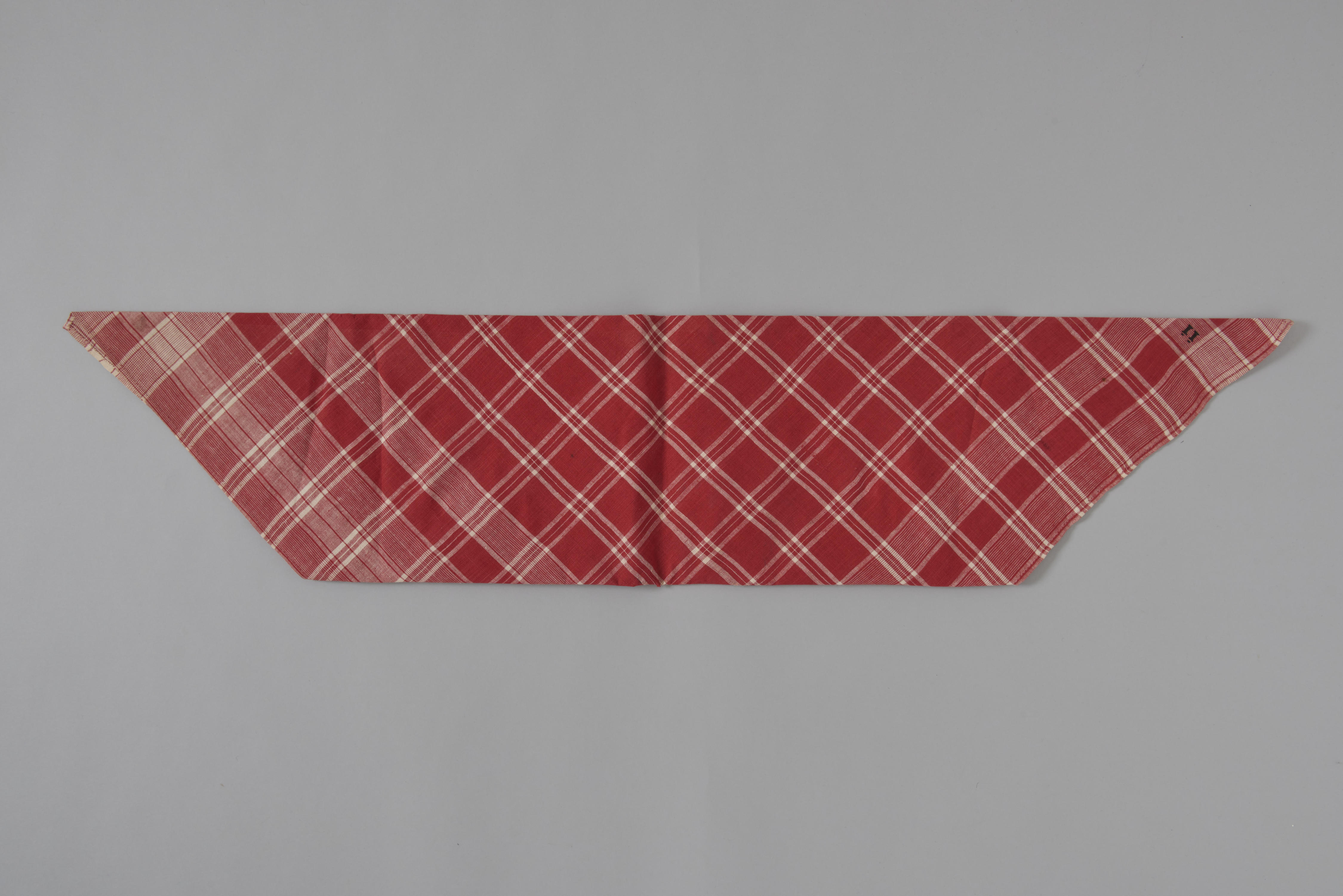 Zondoek van katoen met ingeweven ruiten en de geborduurde initialen 'L.L.' De doek is afkomstig van Marken.